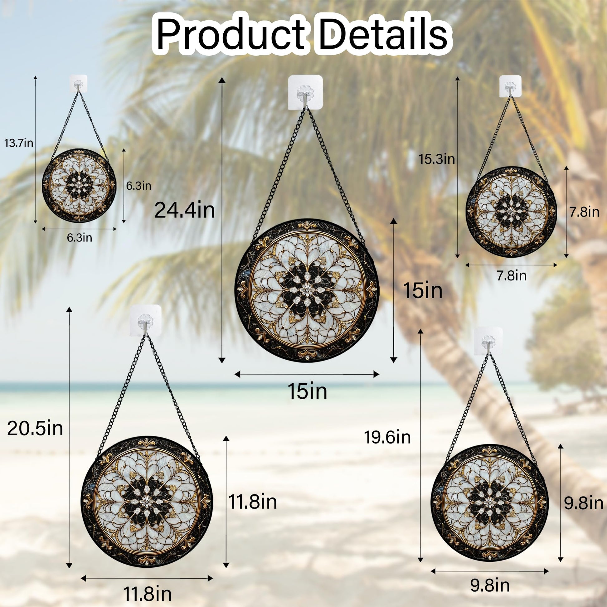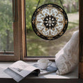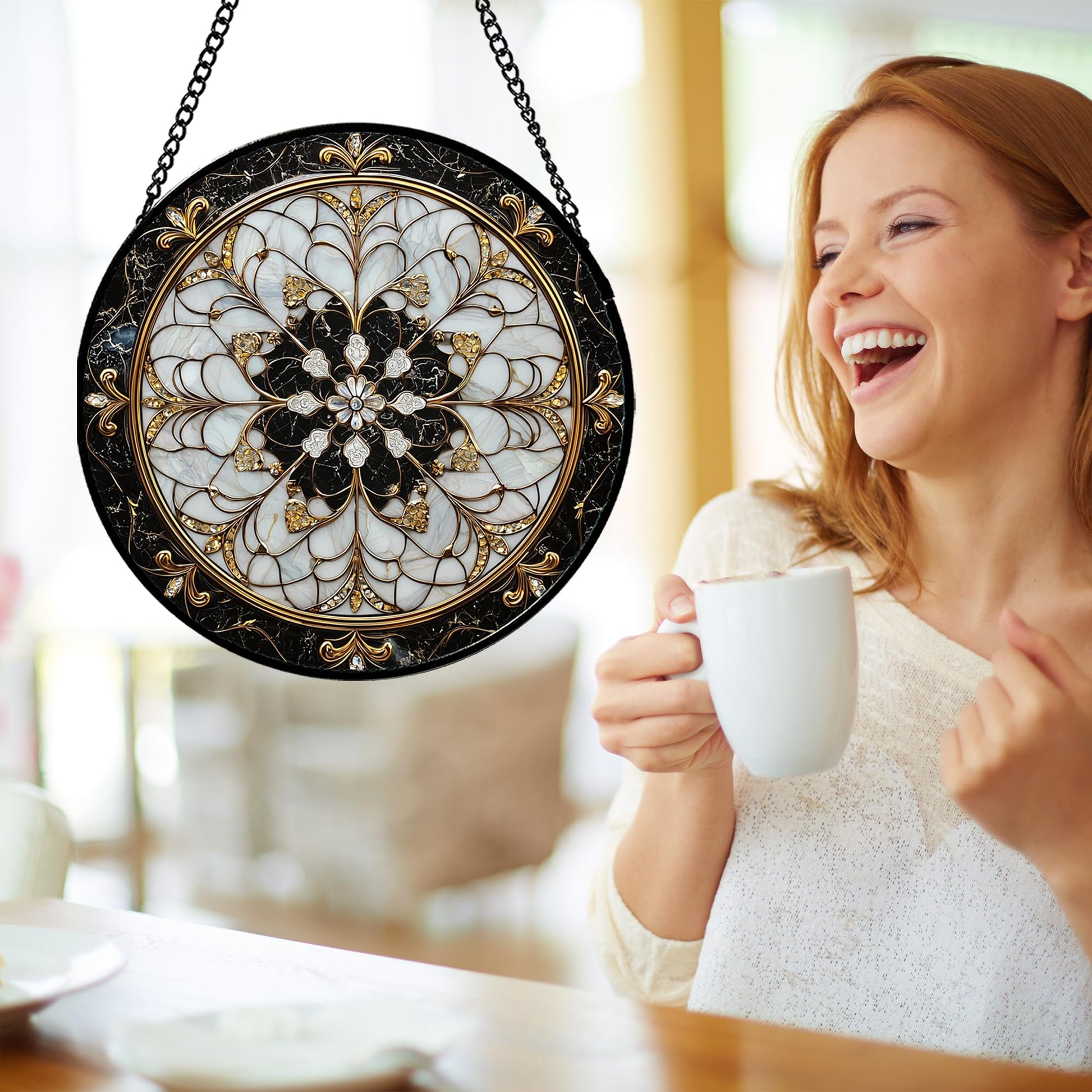 Black White and Gold Boho Sun Catcher – Abstract Floral Window Hanging for Home & Gifting