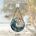 Blue and White Wave Stained Glass Sun Catcher – Coastal Landscape Window Hanging Decor