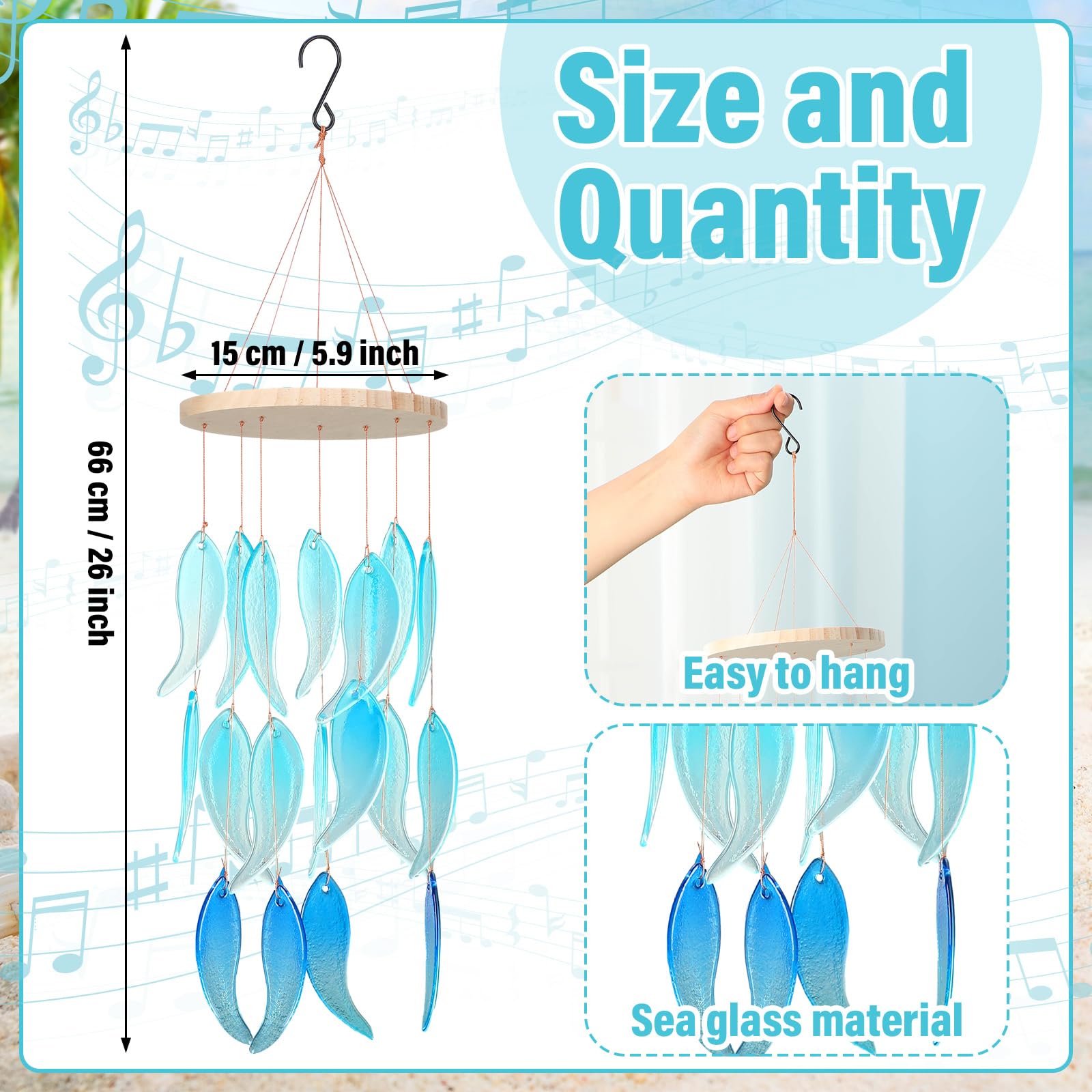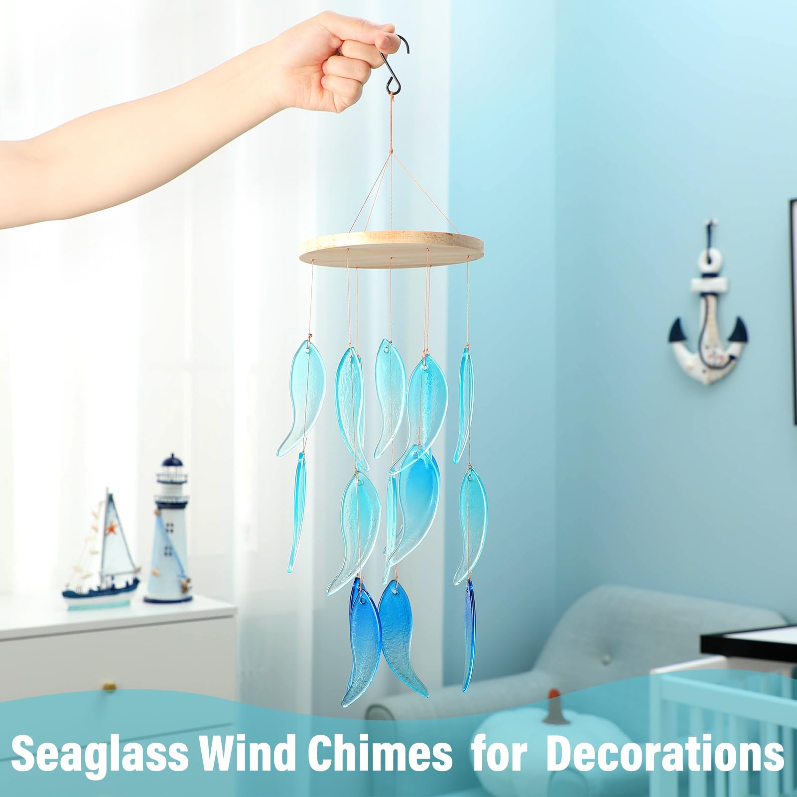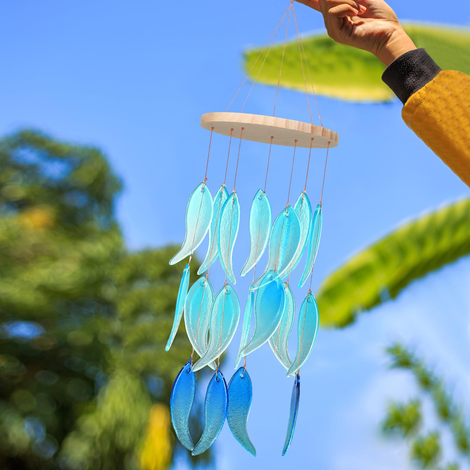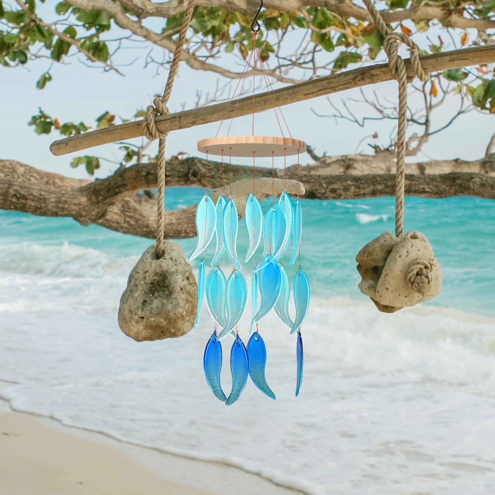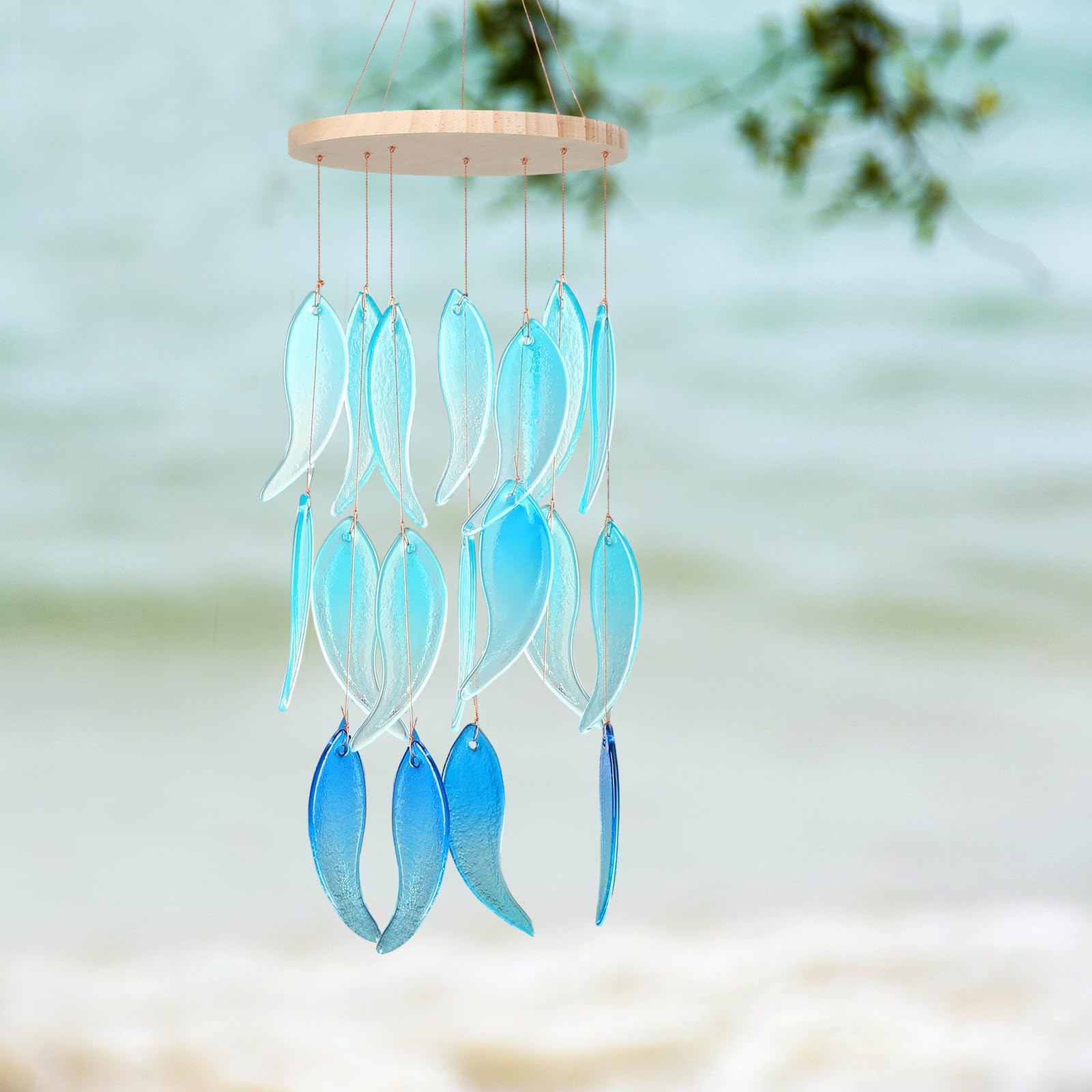 Blue Sea Glass Wind Chime – 26 Inch Ocean-Themed Gift for Patio & Garden