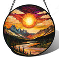Dusk Lakes & Mountains Stained Glass Suncatcher – Handmade 7.8" Sunset Landscape Window Hanging