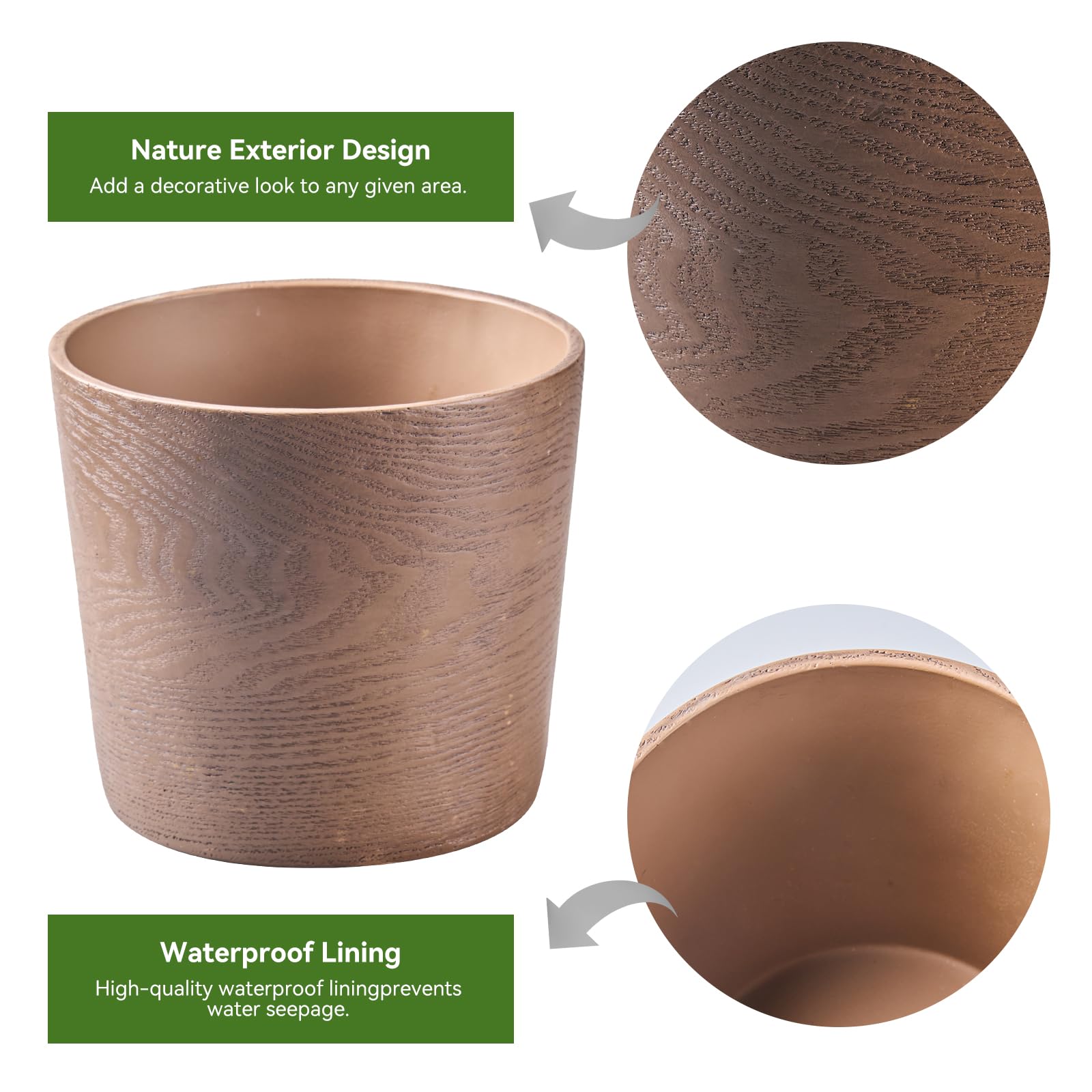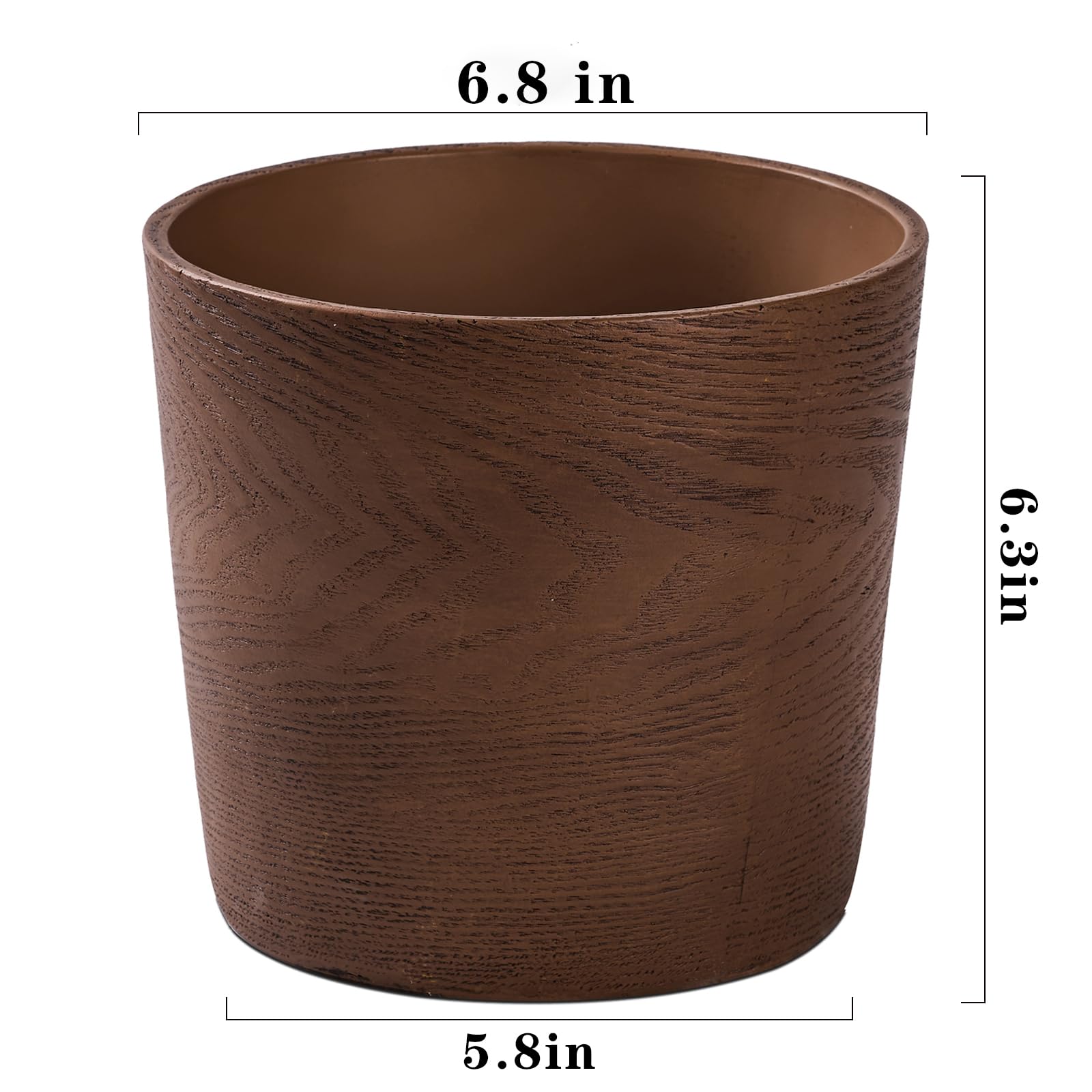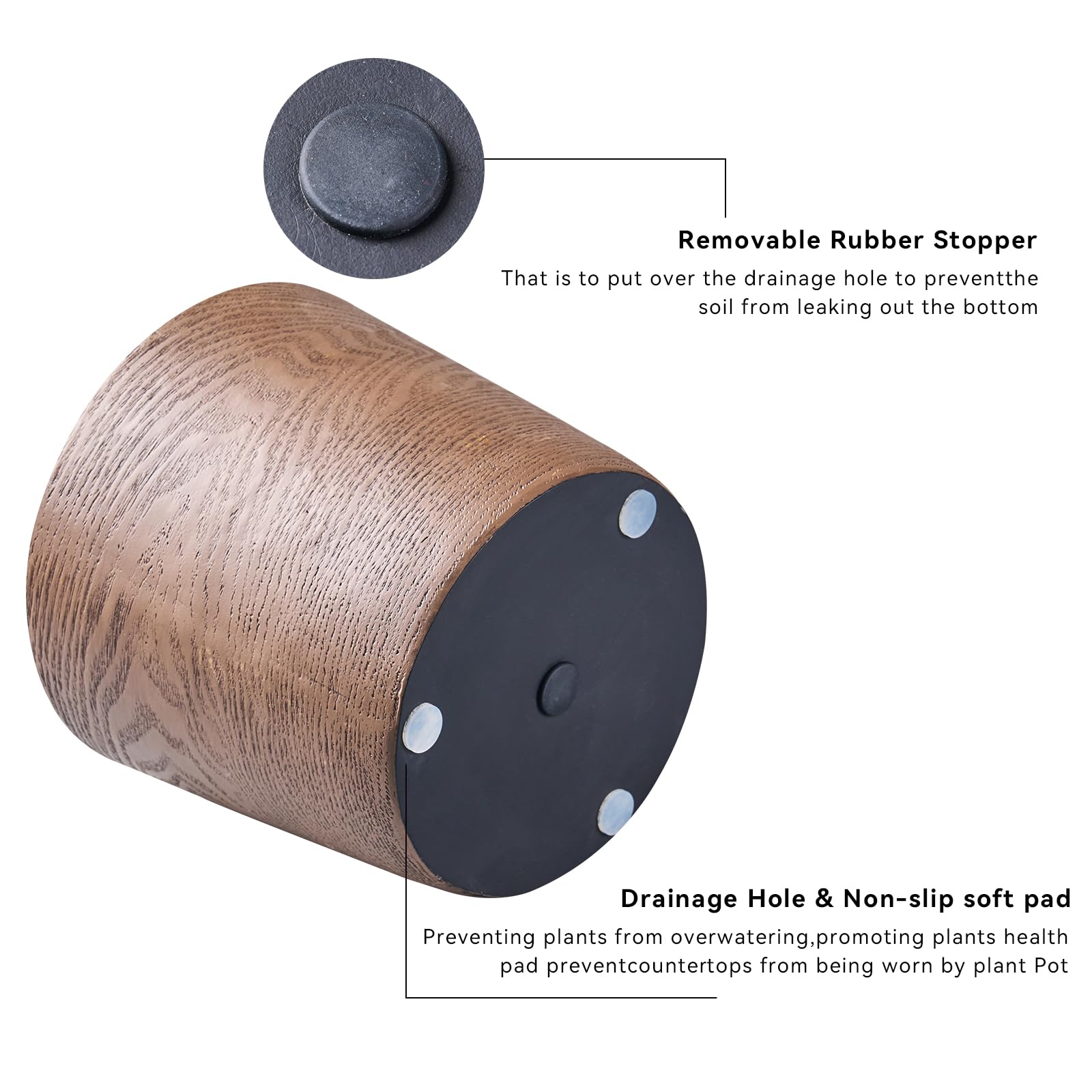Elegant Mahogany-Textured Resin Planter - Modern Pot with Drainage & Non-Slip Base