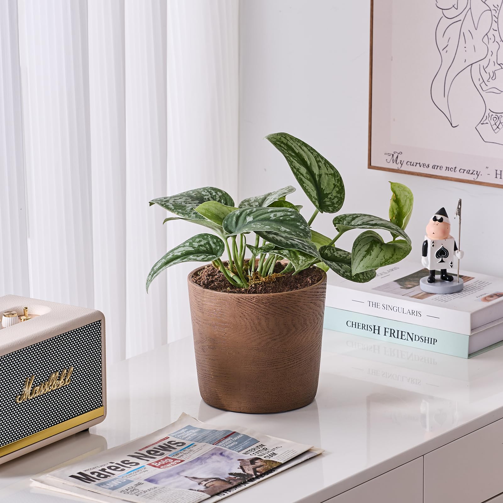 Bring timeless elegance to your indoor garden with this richly textured mahogany-style planter. Crafted from weighty eco-resin, it offers durability and drainage control—ideal for healthy growth in any room while complementing both modern and natural decor.