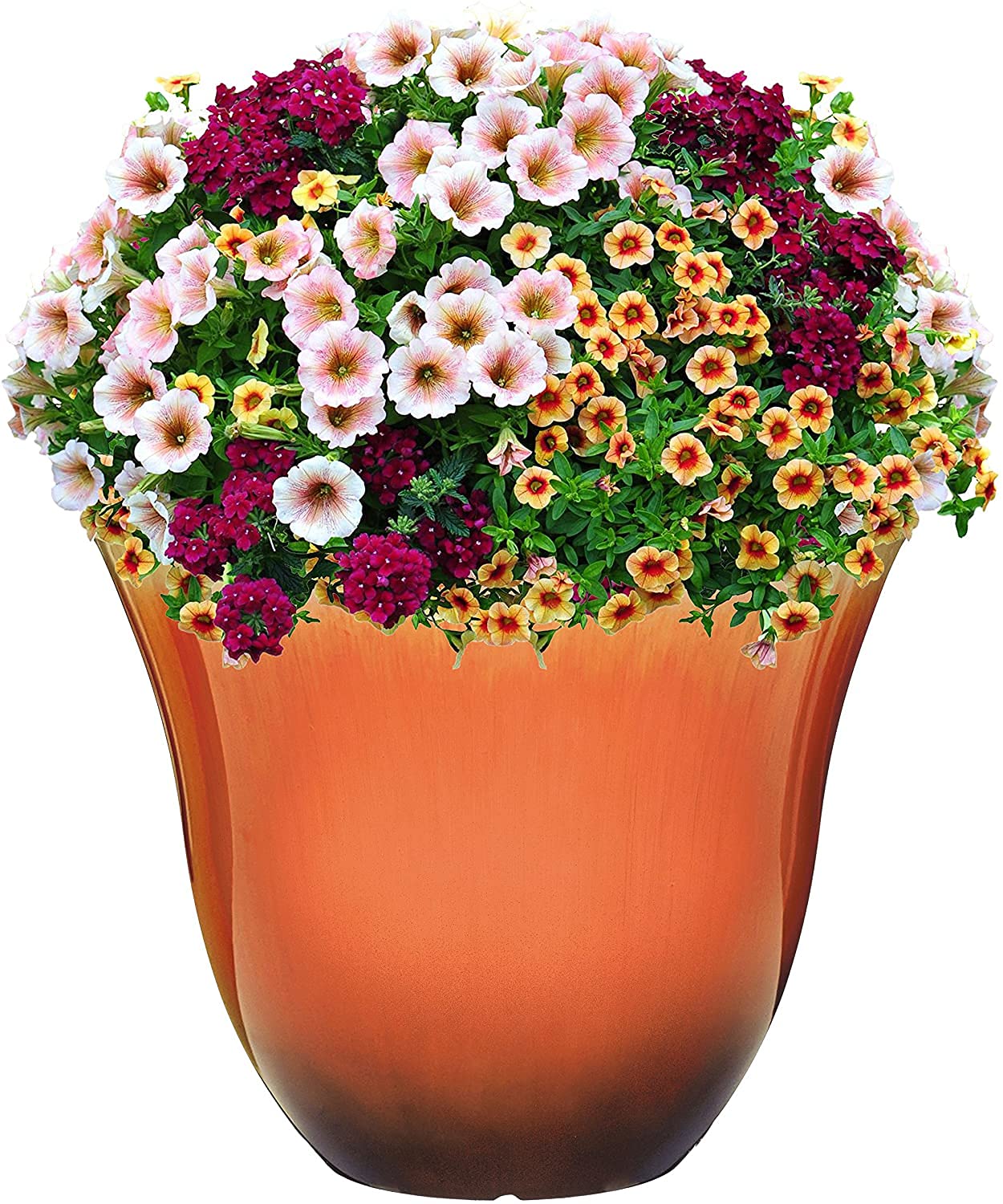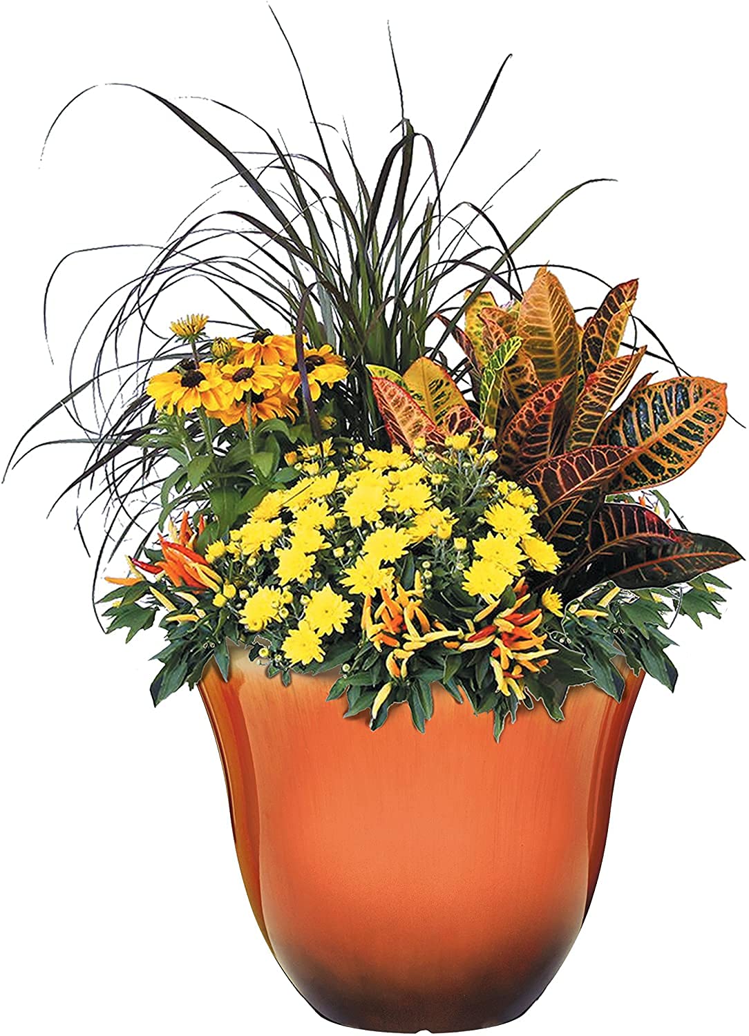 Brighten your patio or living space with the vibrant Tequila Sunrise hue of this classic honeysuckle-style planter. Lightweight yet durable, it combines elegant ceramic-like appeal with all-weather performance—perfect for creating a lush, colorful corner in your home or garden.