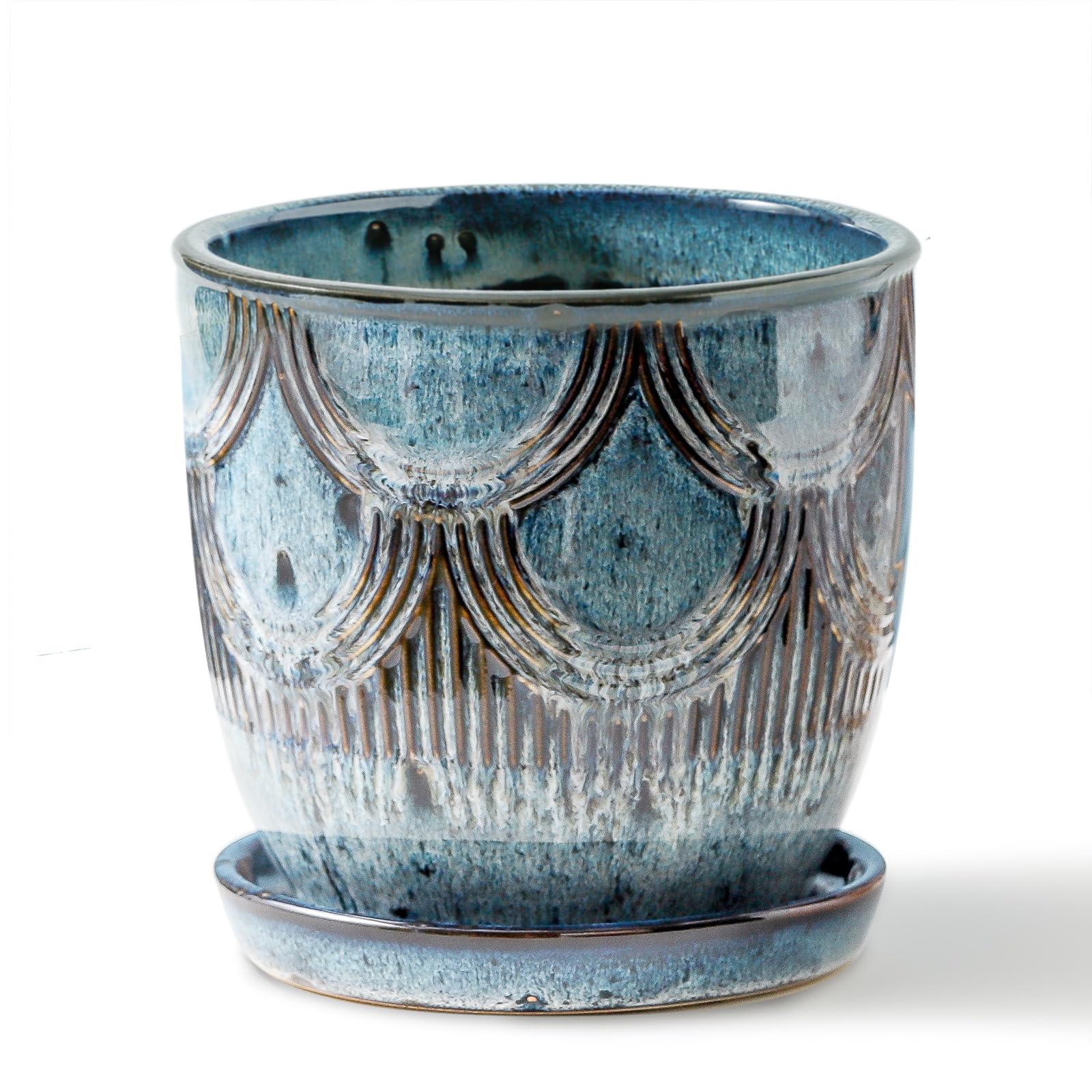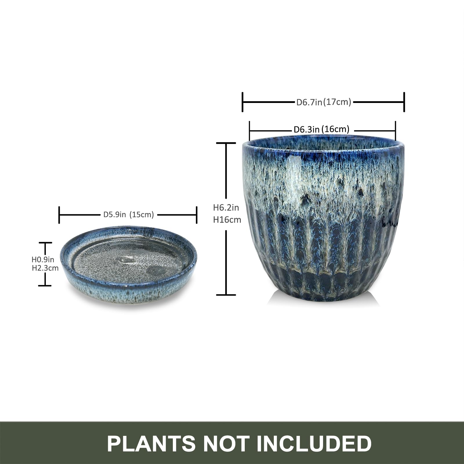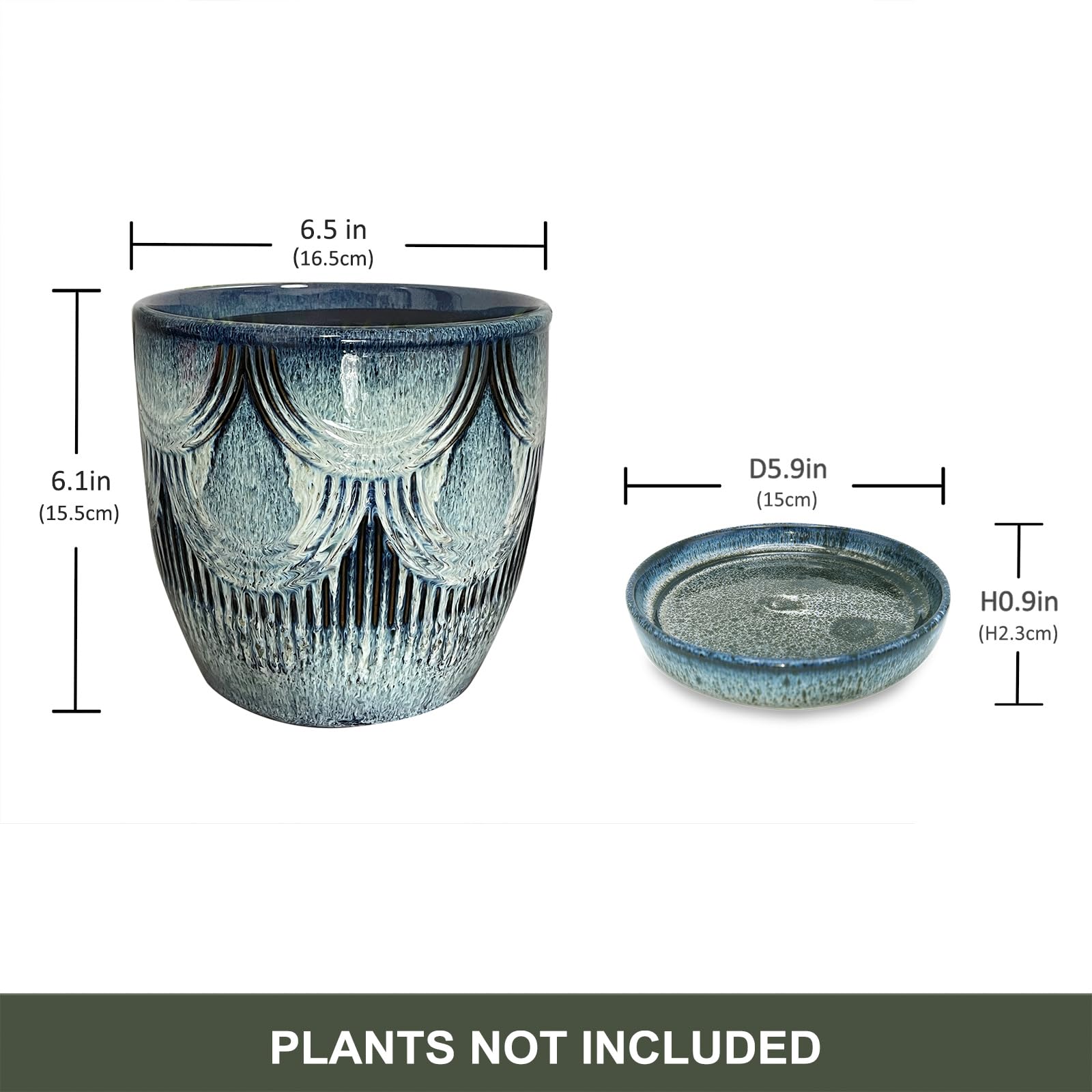 Reactive Blue Glaze Ceramic Planter – 6 inch with Drainage & Saucer