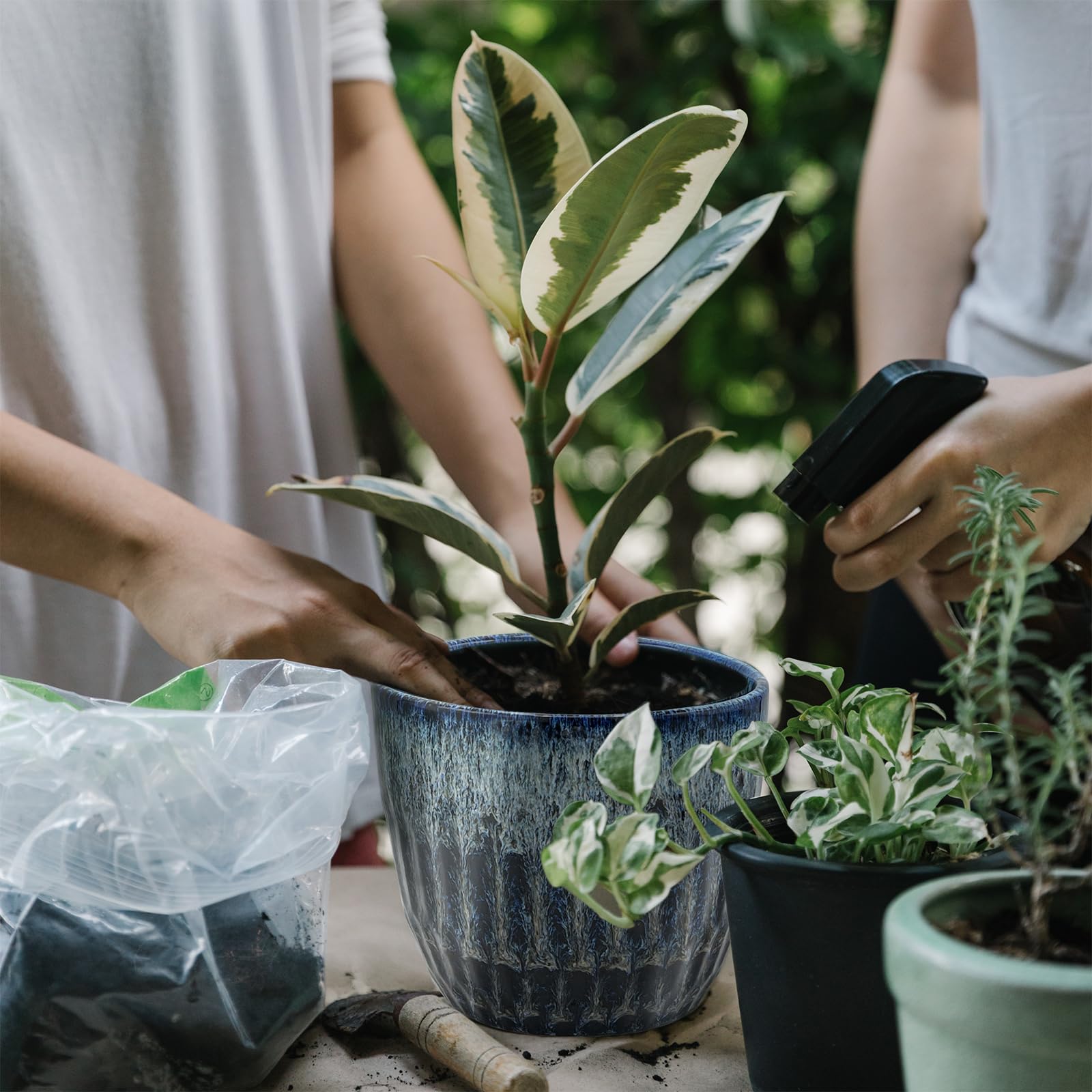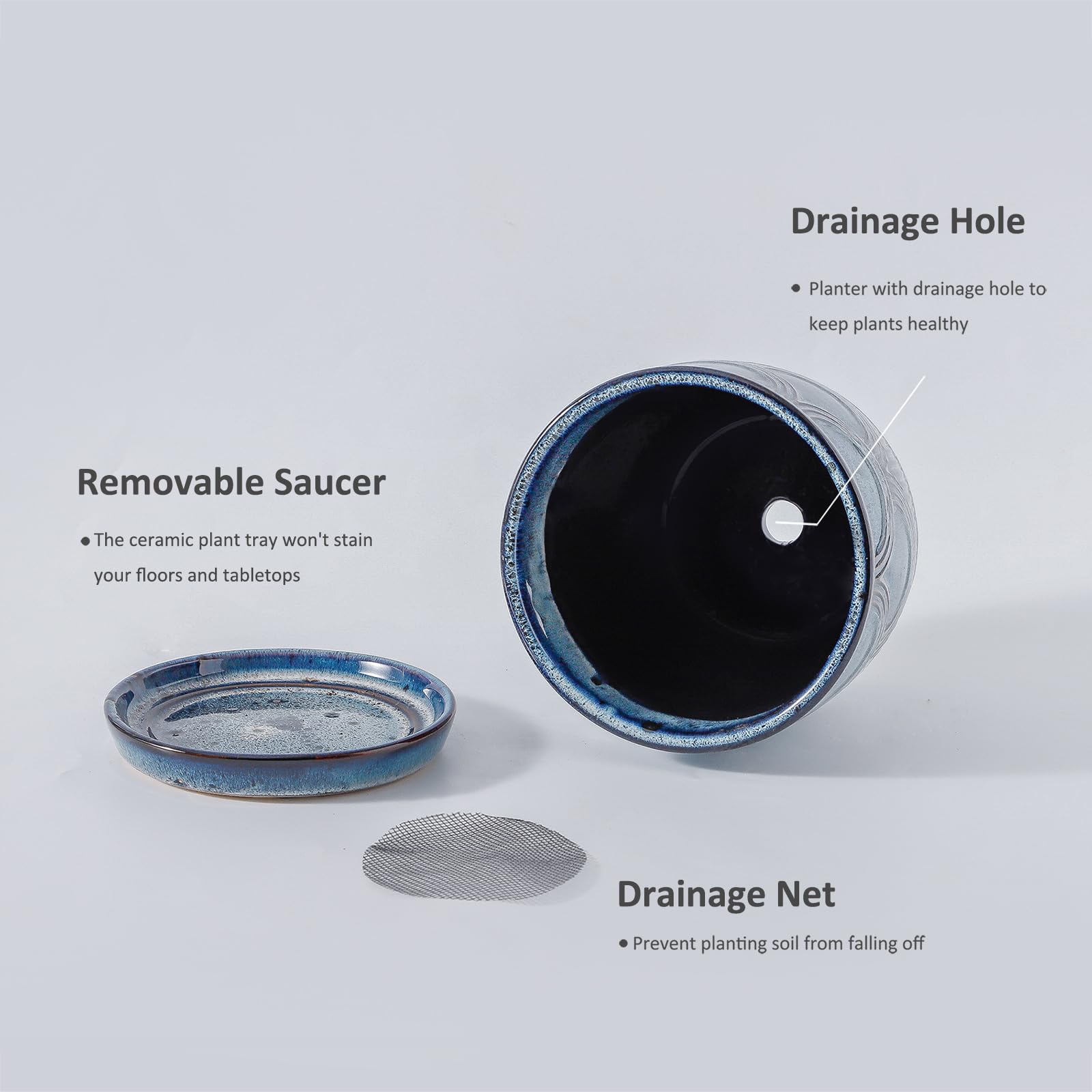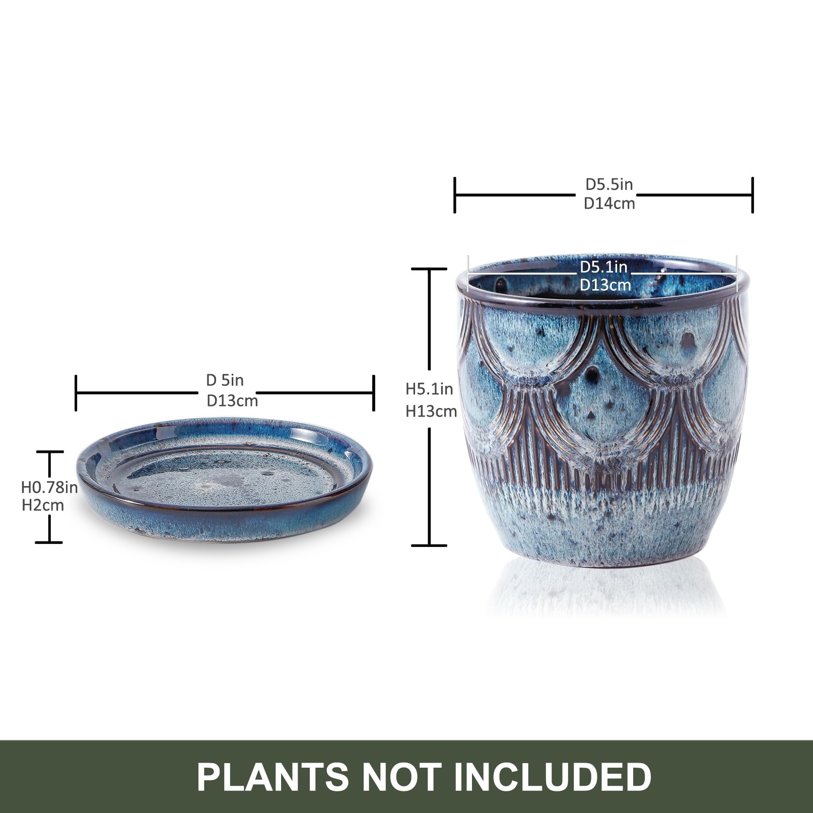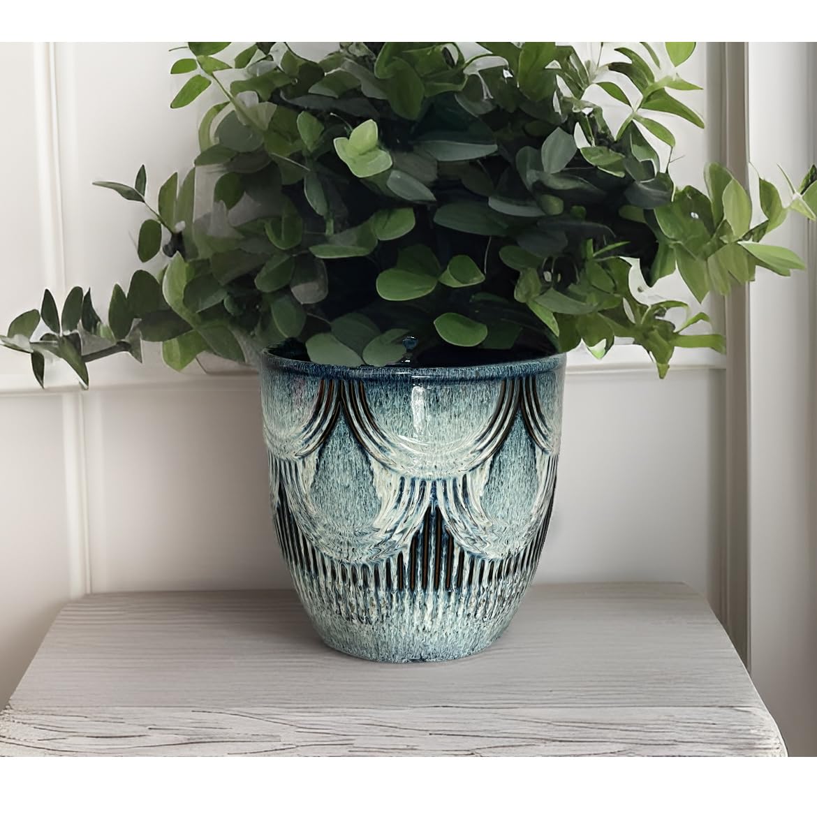 Reactive Blue Glaze Ceramic Planter – 6 inch with Drainage & Saucer