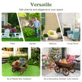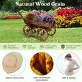 Rustic Wooden Wagon Planter - Mobile Garden Cart with Adjustable Handle