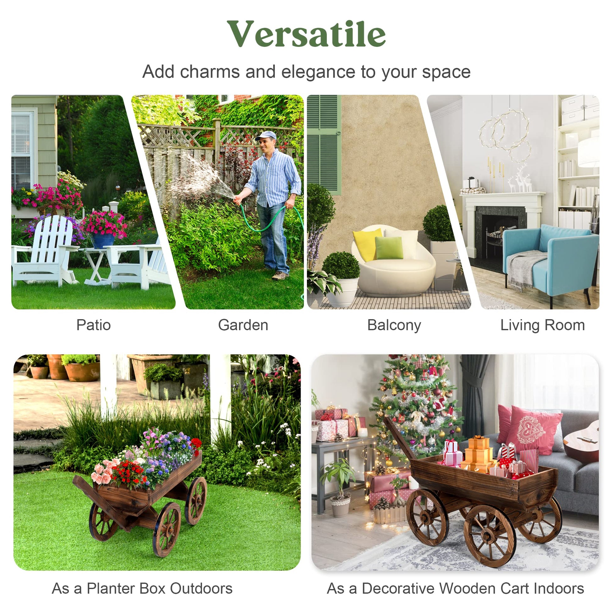 Designed for gardeners who love flexibility and rustic charm, this wooden wagon planter combines natural fir wood construction with smooth-rolling mobility. The adjustable handle and four flexible wheels make it easy to move your plants wherever sunlight or style calls—perfect for patios, balconies, and garden displays.