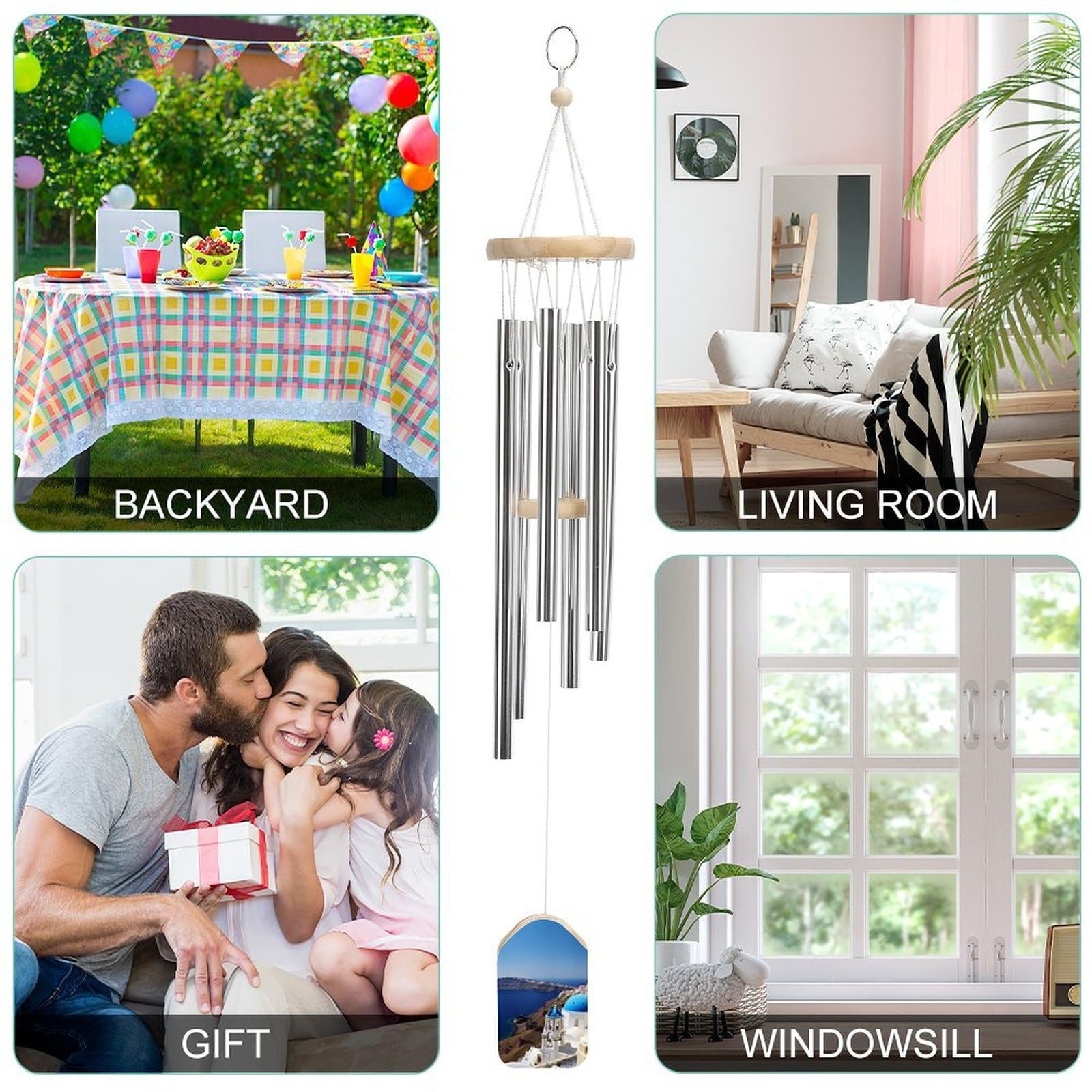 - Tones: Harmonious aluminum chimes