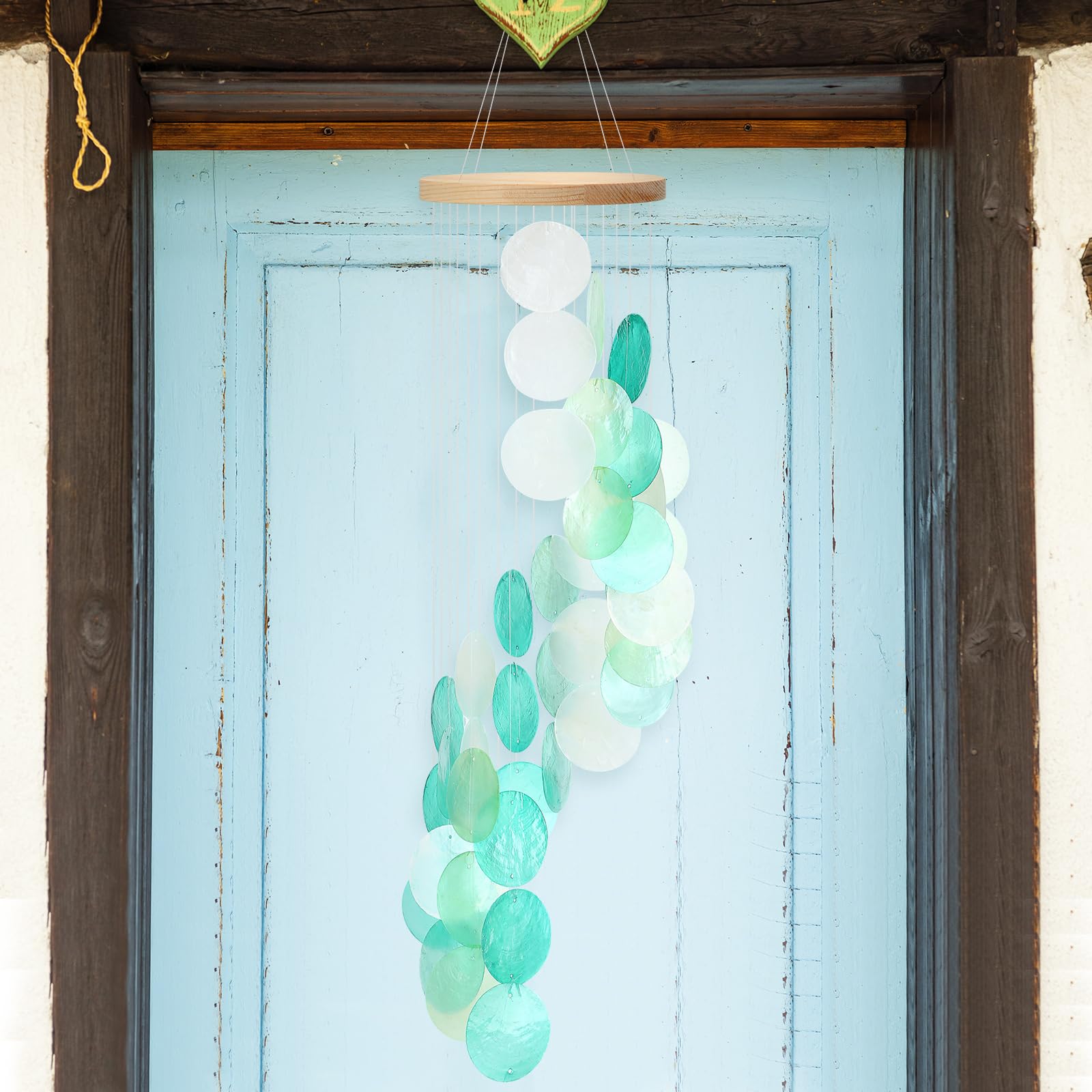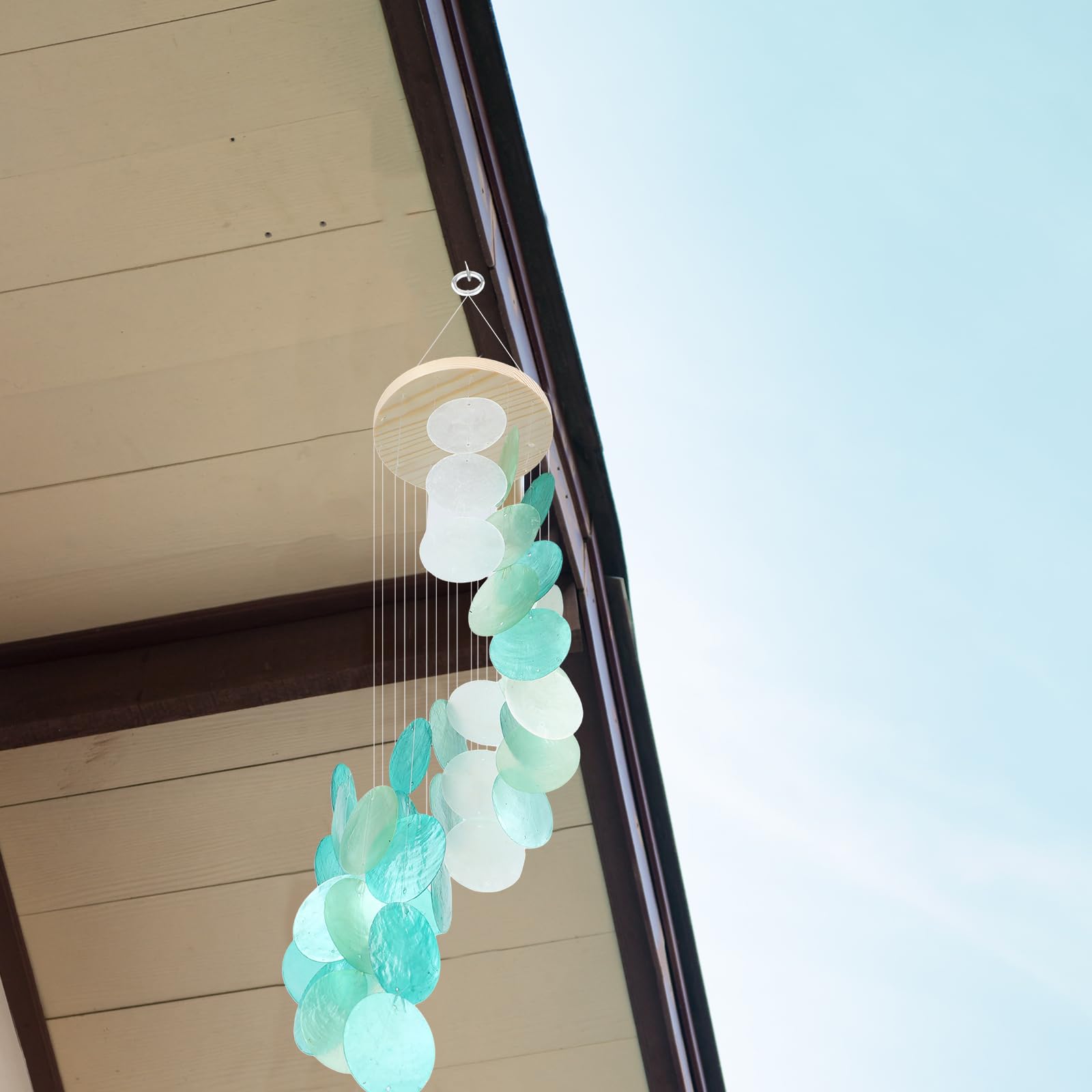 Bring the soothing sounds and serene beauty of the ocean into your home with this delicate spiral wind chime. Handcrafted from real sea glass, natural shells, and rustic wood, it creates gentle, melodic tones with every breeze—perfect for adding a touch of coastal calm to your patio, garden, or living space.