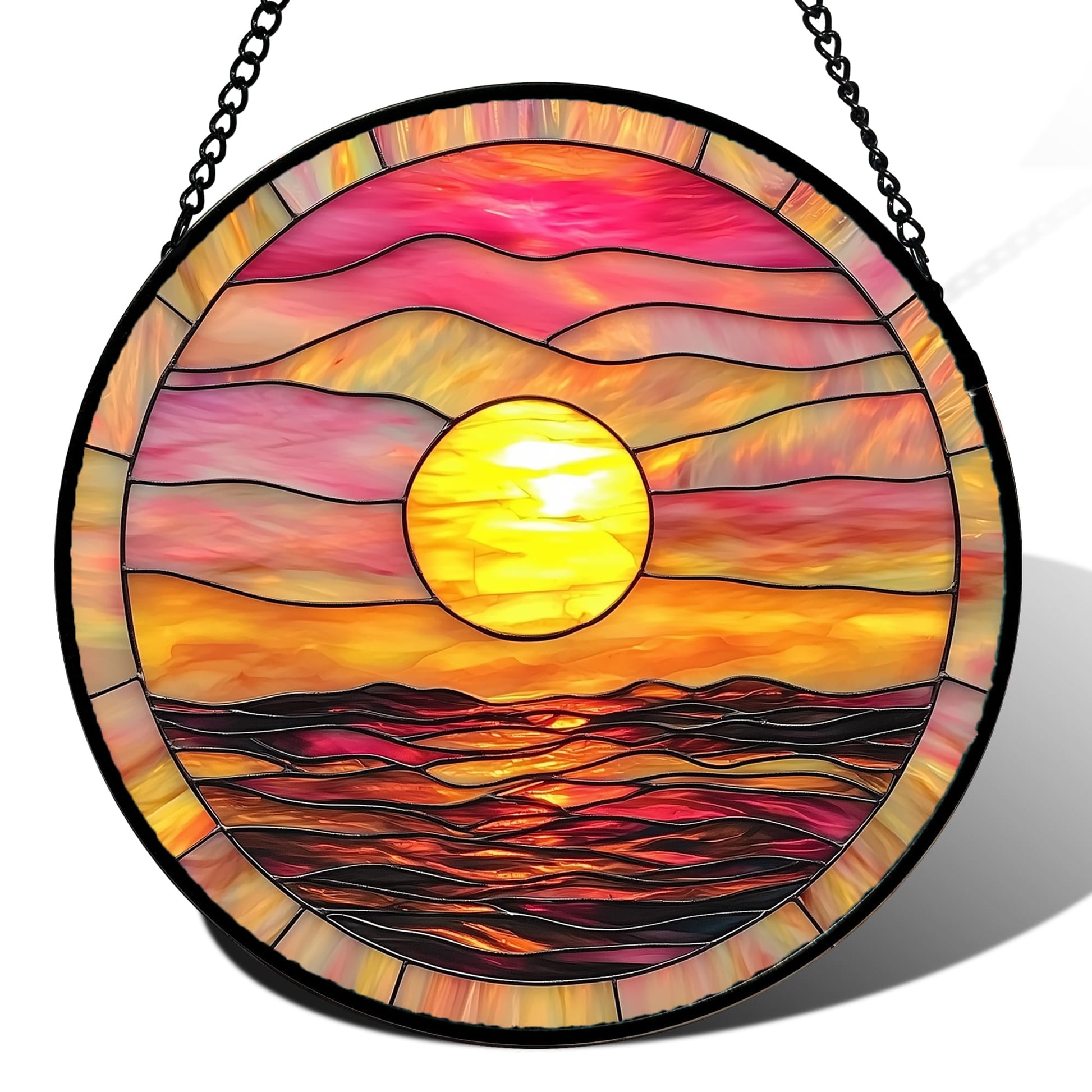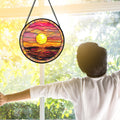 Sunrise Ocean Stained Glass Suncatcher – Handmade 7.8" Abstract Seascape Window Hanging