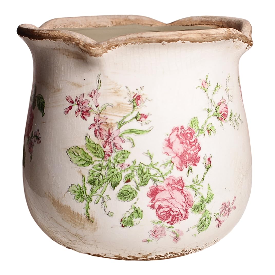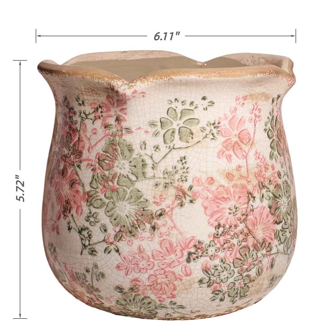 Vintage Crackle-Glaze Ceramic Planter - Pastel Meadow Collection
