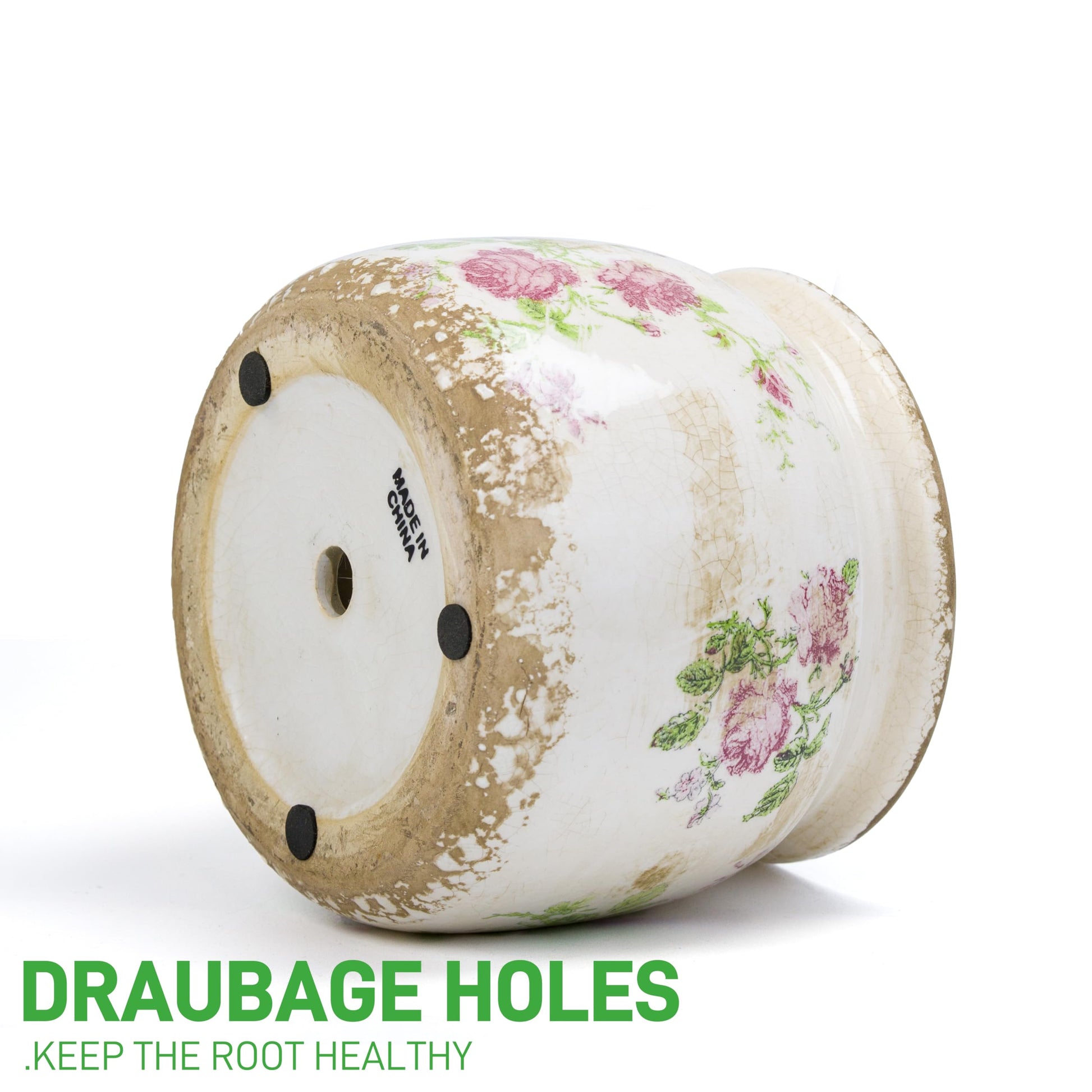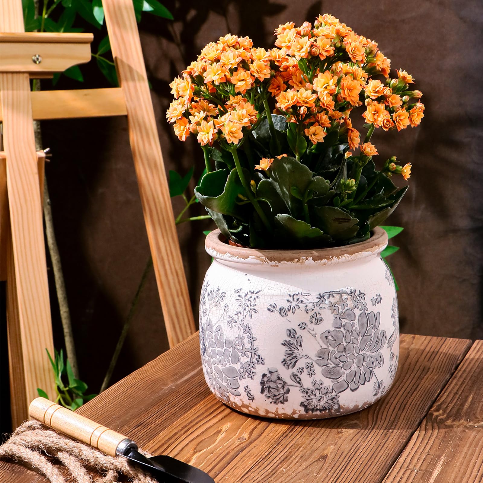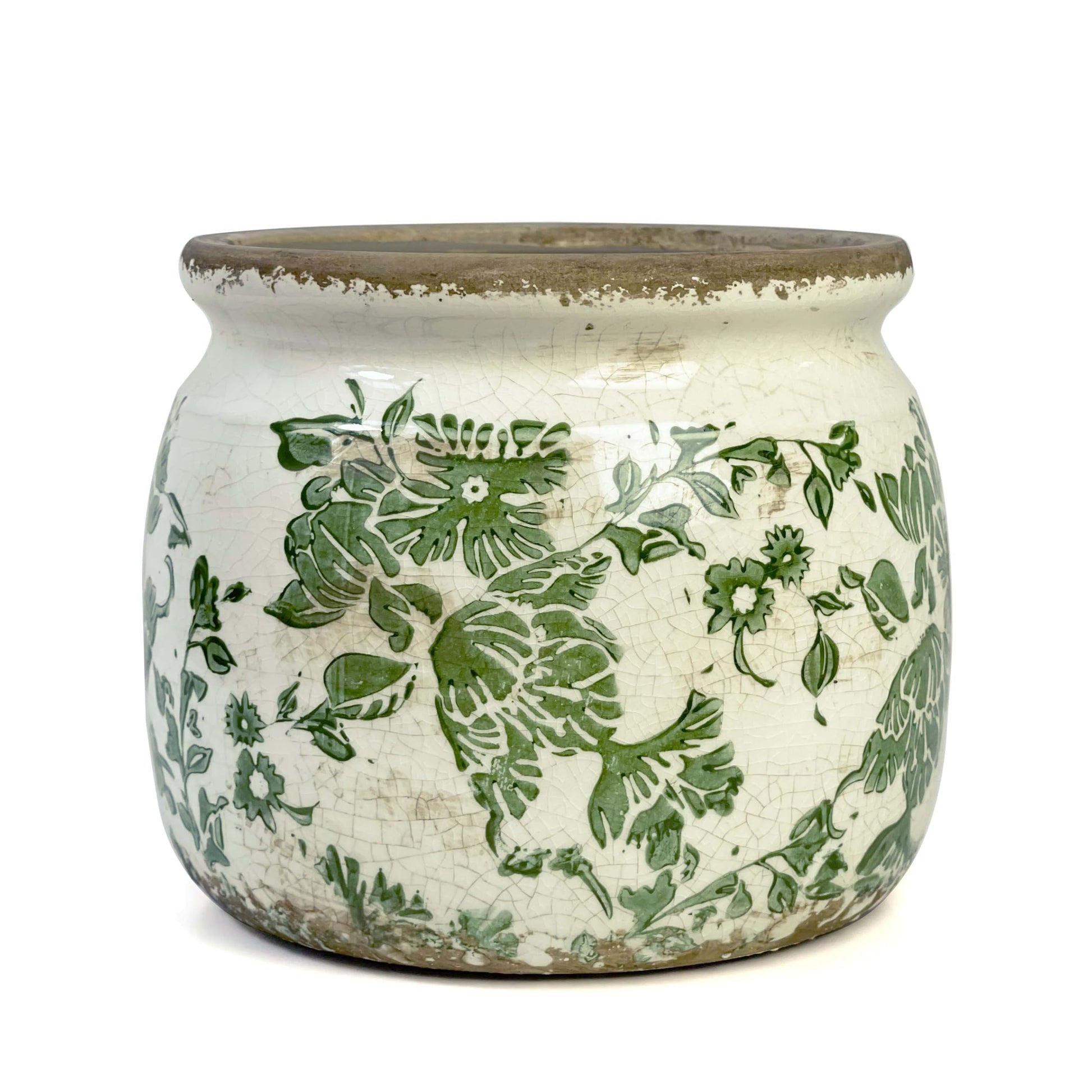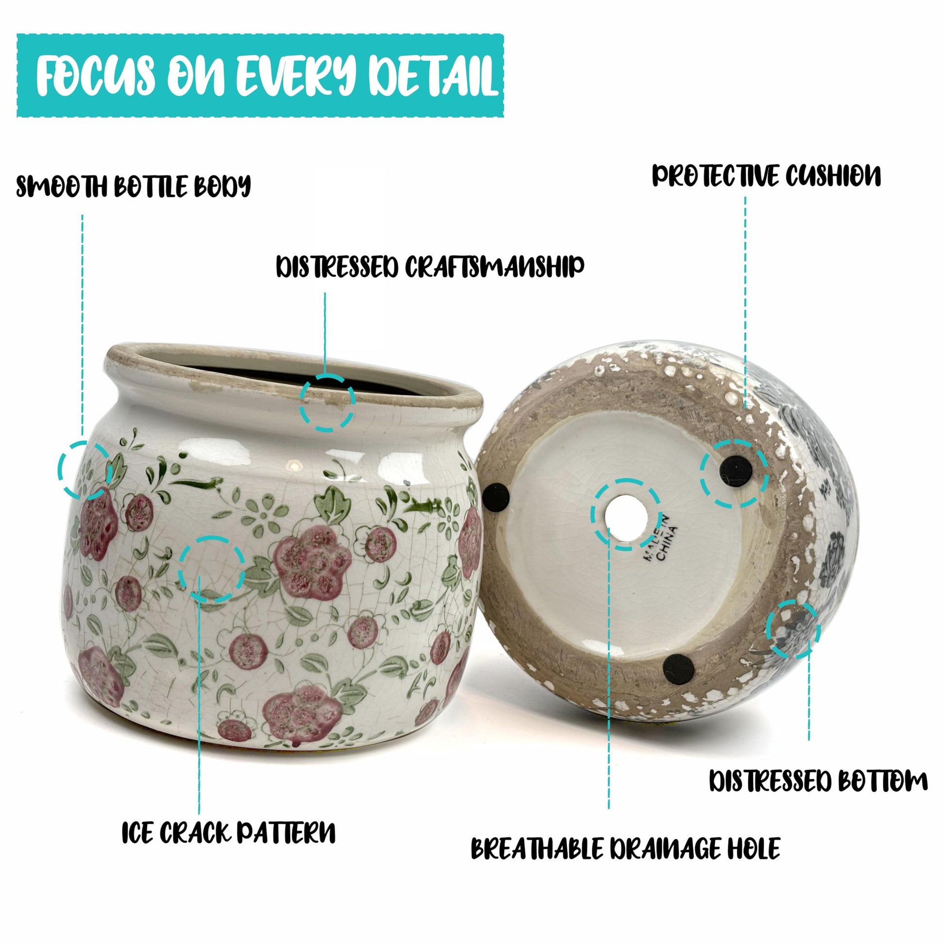 Vintage Crackle-Glaze Ceramic Planter - Rustic Floral Garden Pot