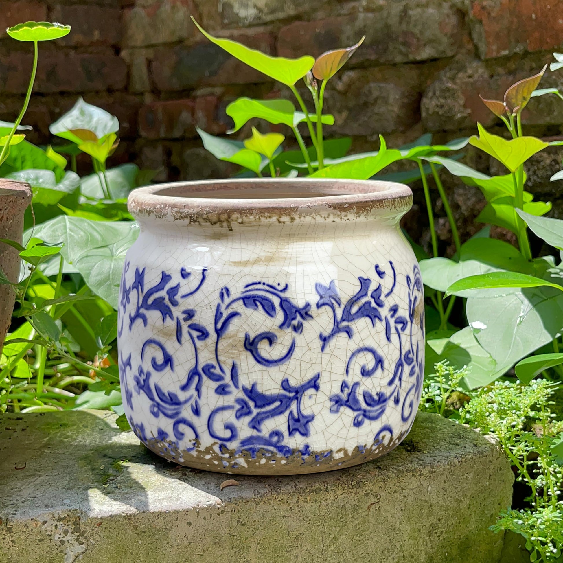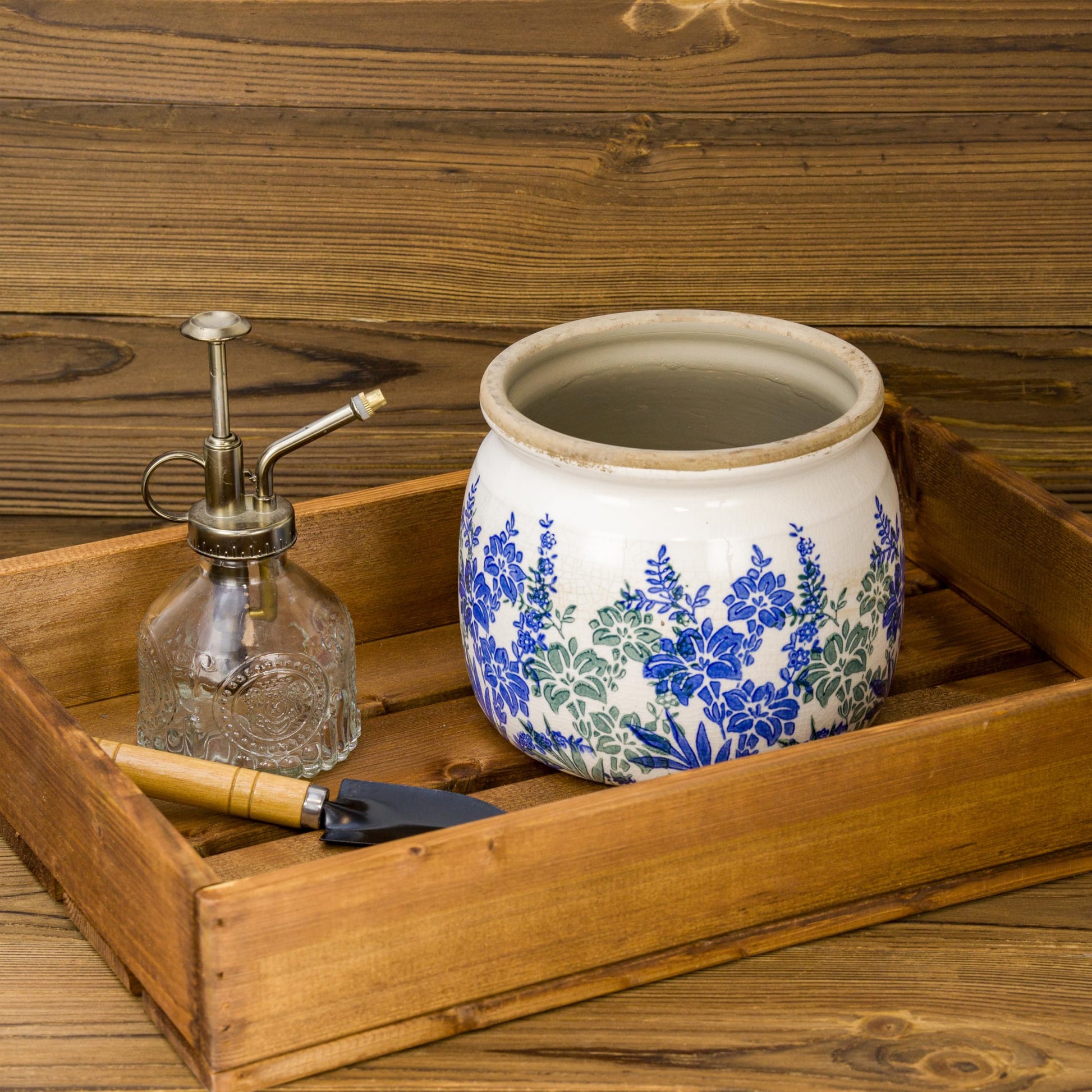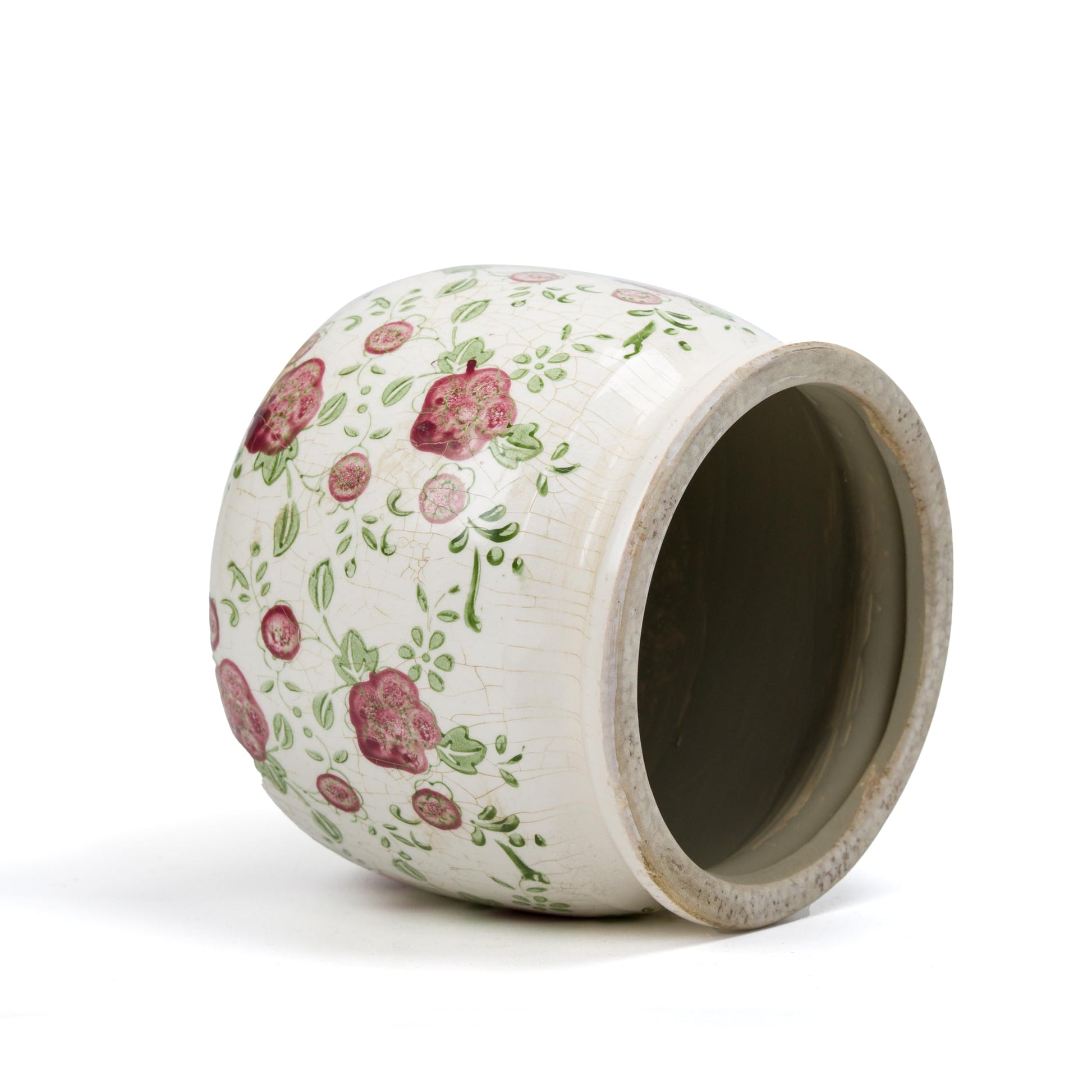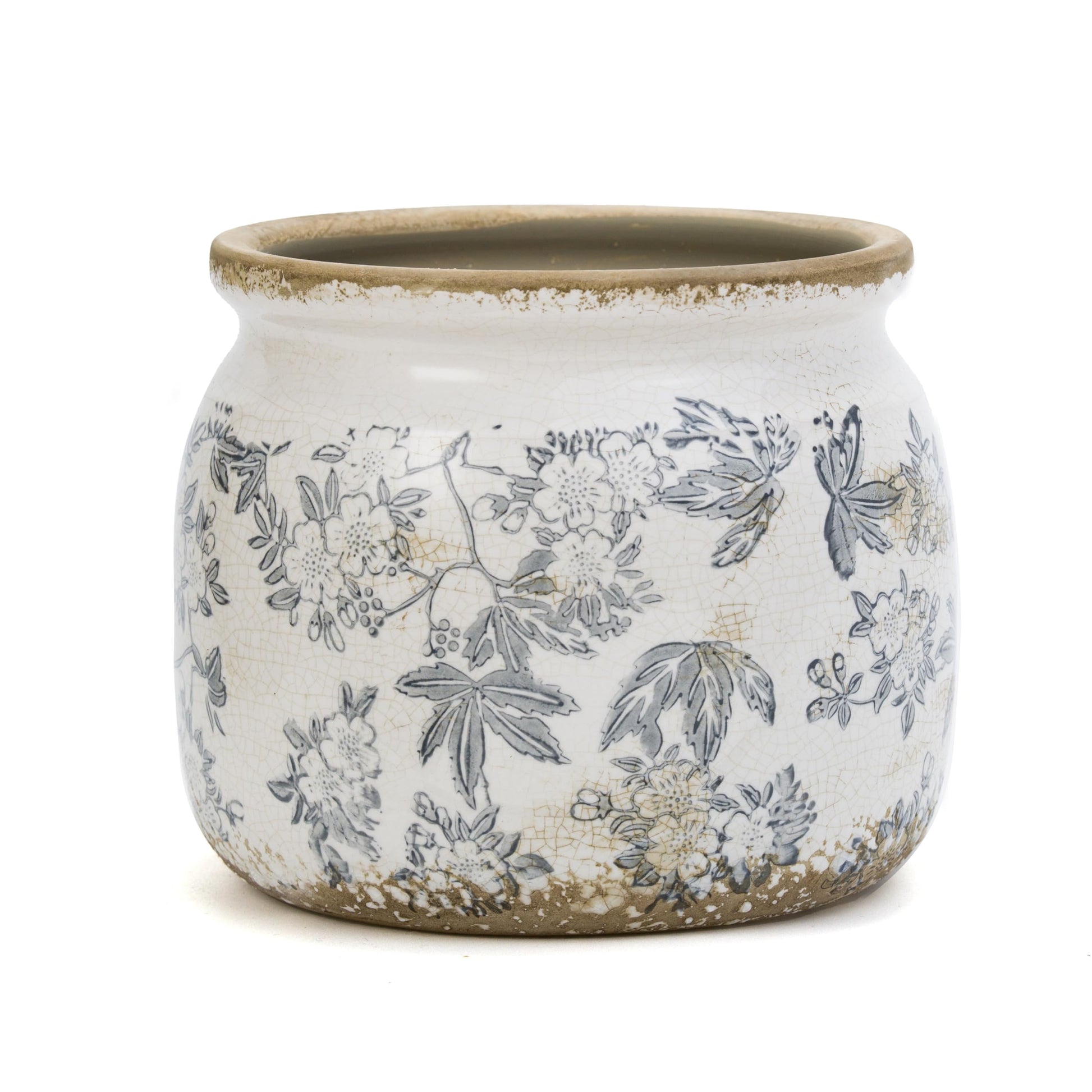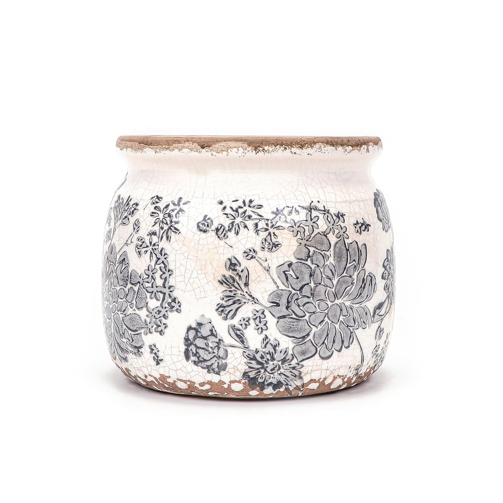 Vintage Crackle-Glaze Ceramic Planter - Rustic Floral Garden Pot