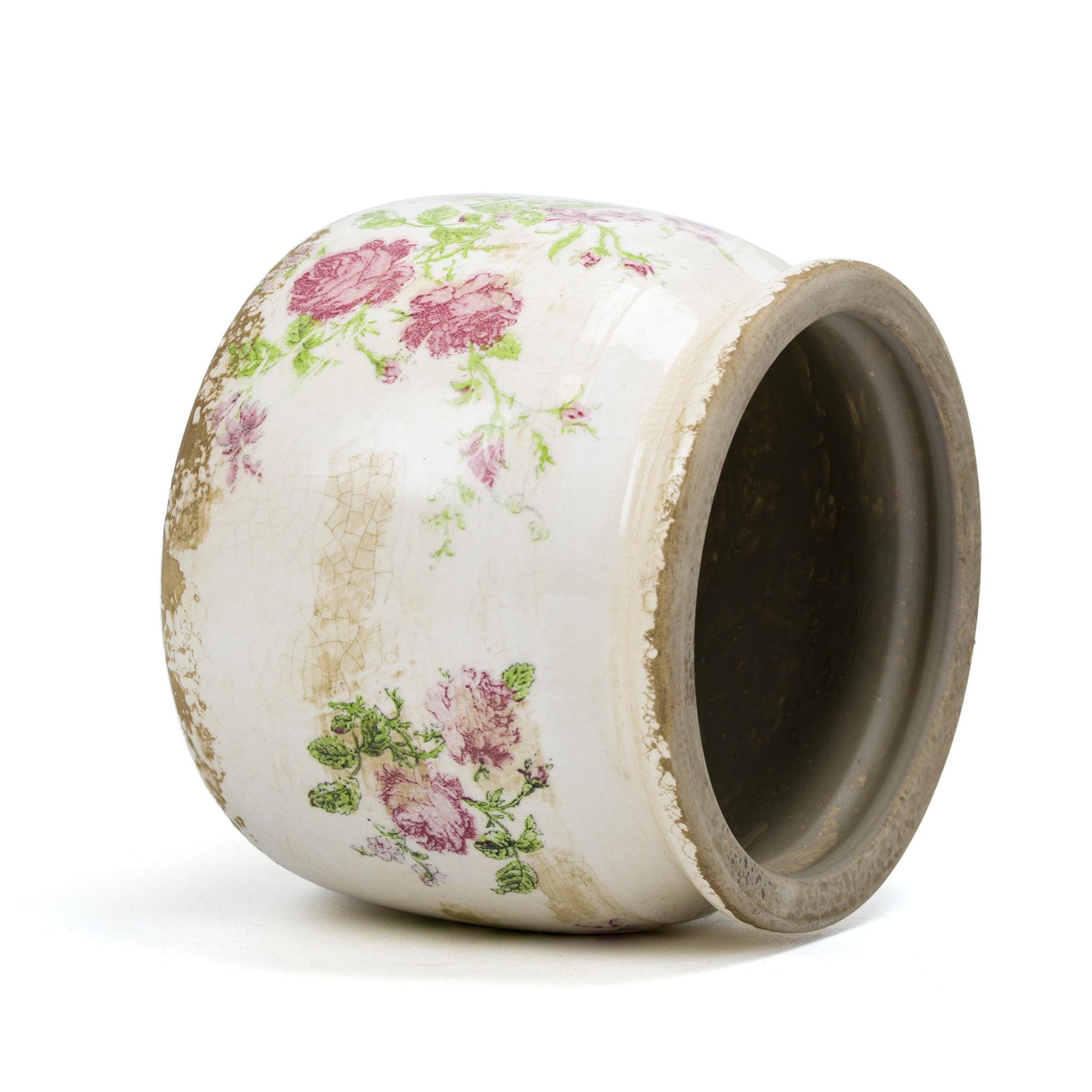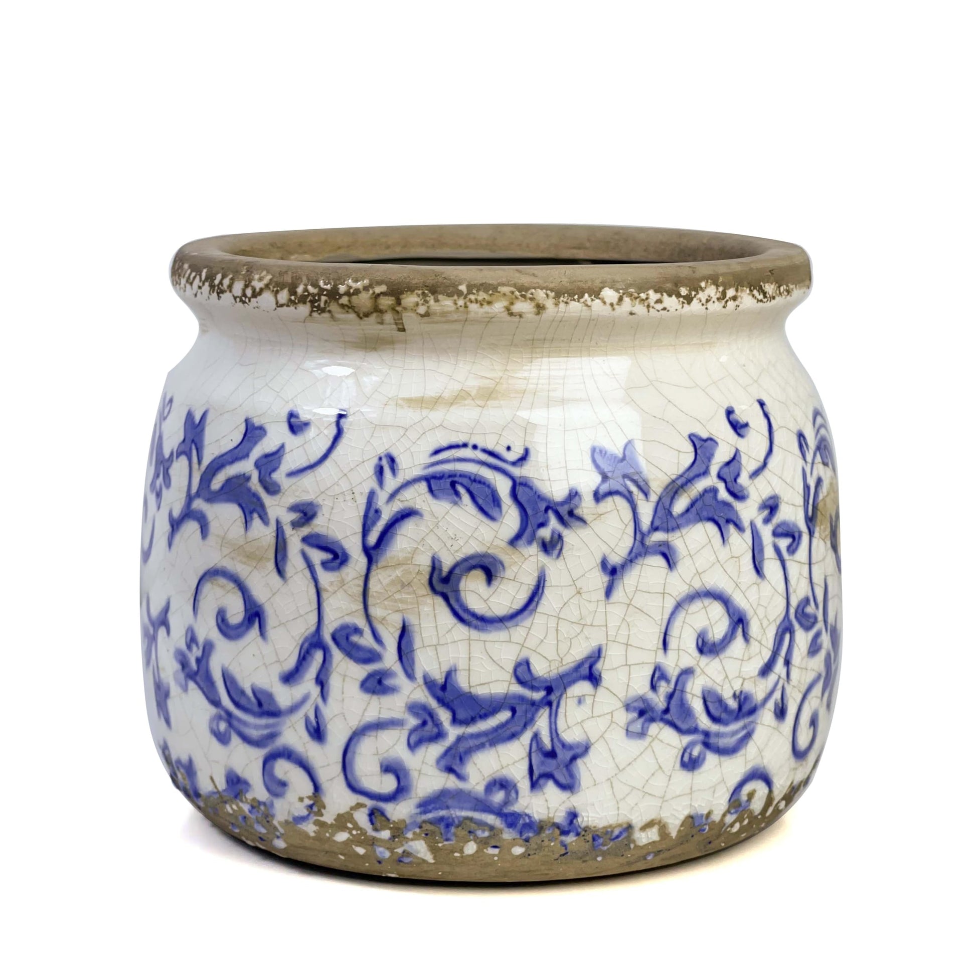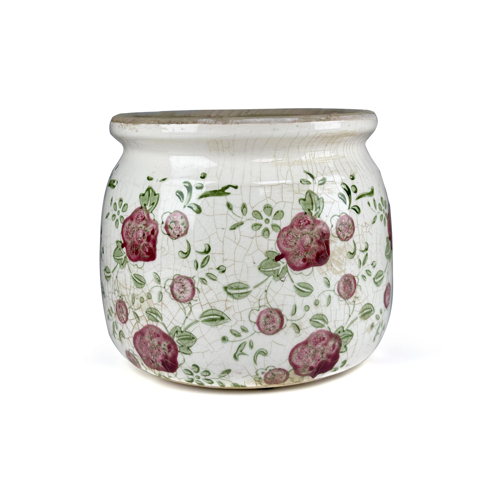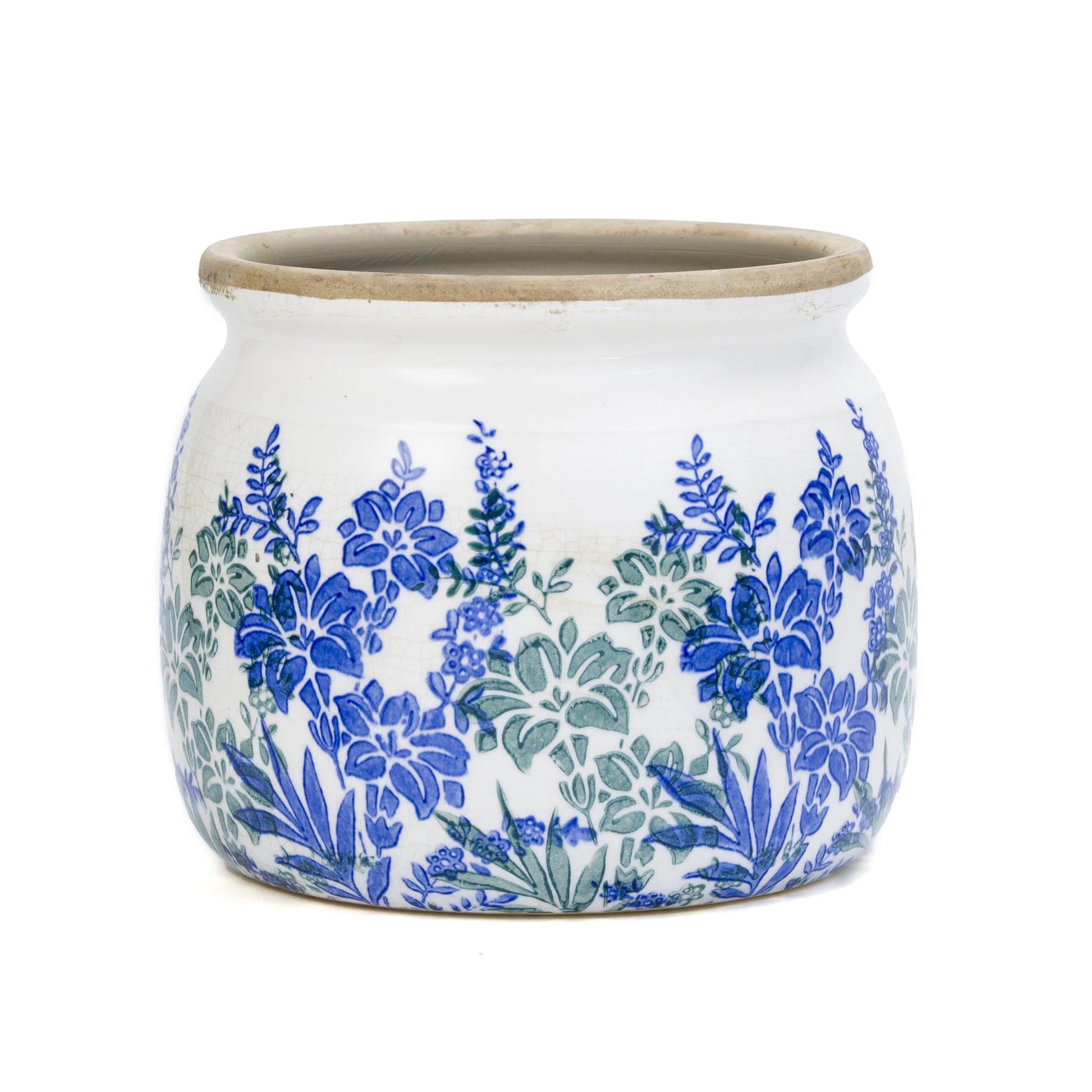 Vintage Crackle-Glaze Ceramic Planter - Rustic Floral Garden Pot