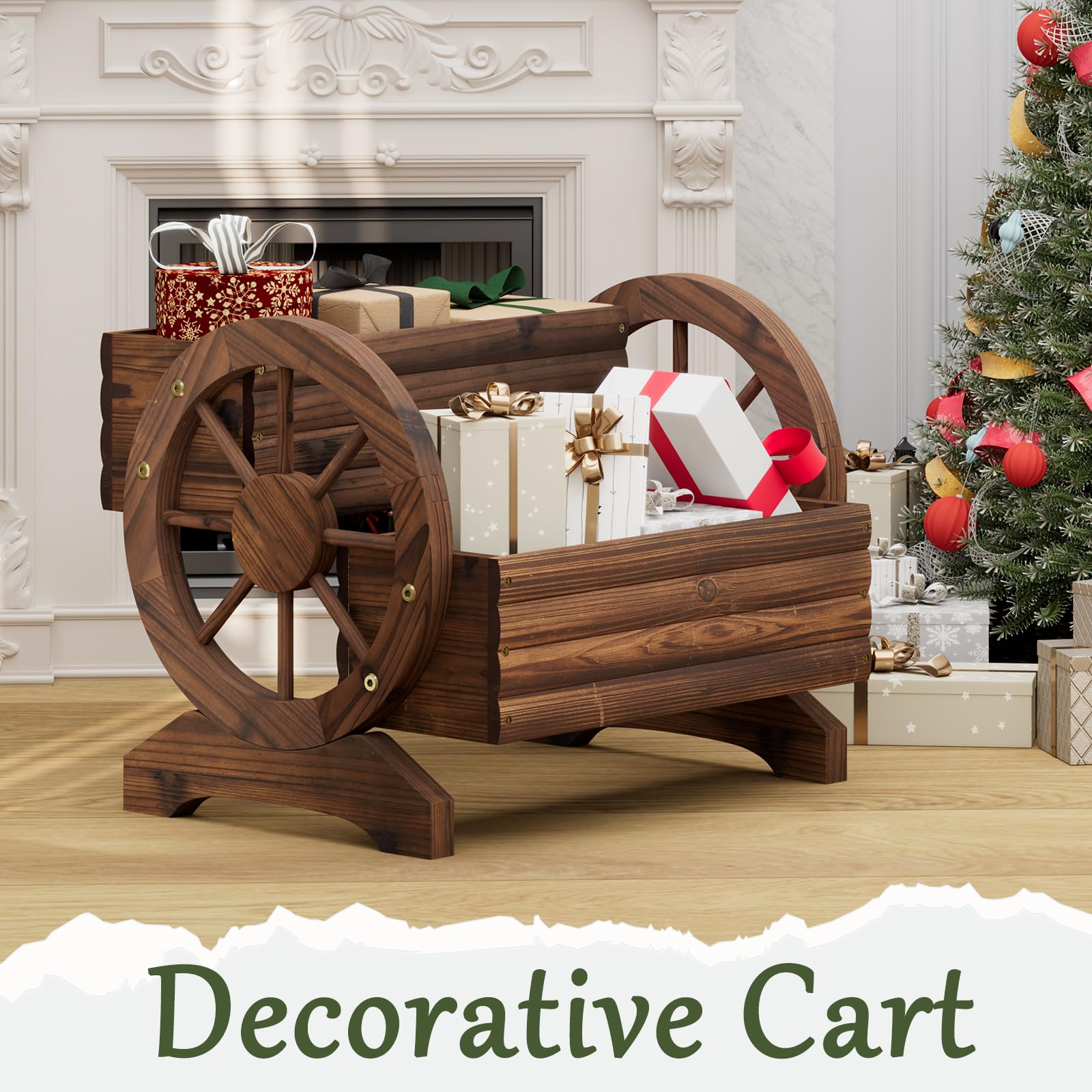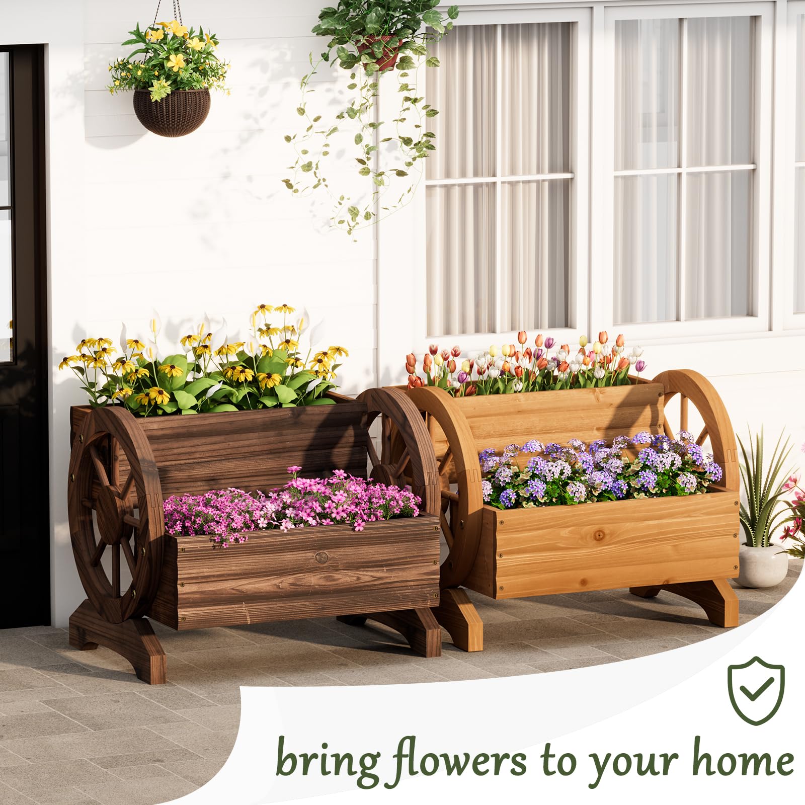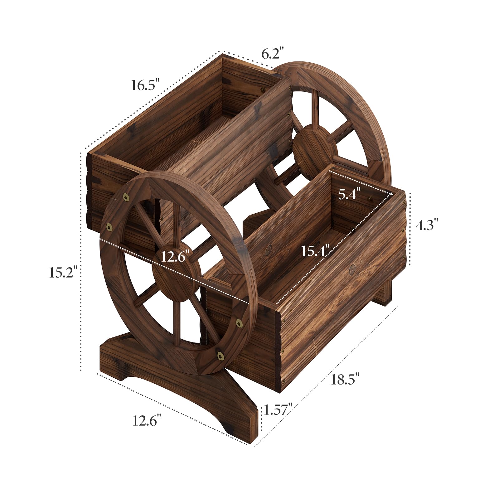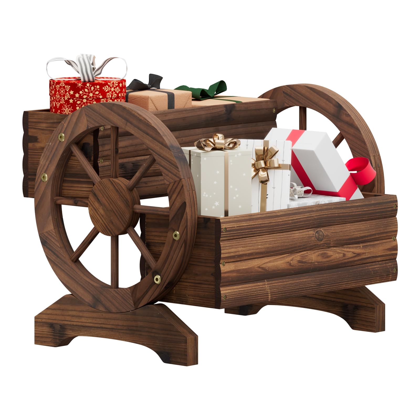 Add rustic charm and easy mobility to your gardening with this solid fir wood wagon planter. Its carbonized finish offers natural rot resistance, while the smooth-rolling wheels let you bring the sunshine—and your plants—wherever you need a touch of natural beauty.