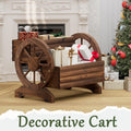 Wooden Wagon Planter with Wheels - Mobile Garden Cart for Patio & Balcony